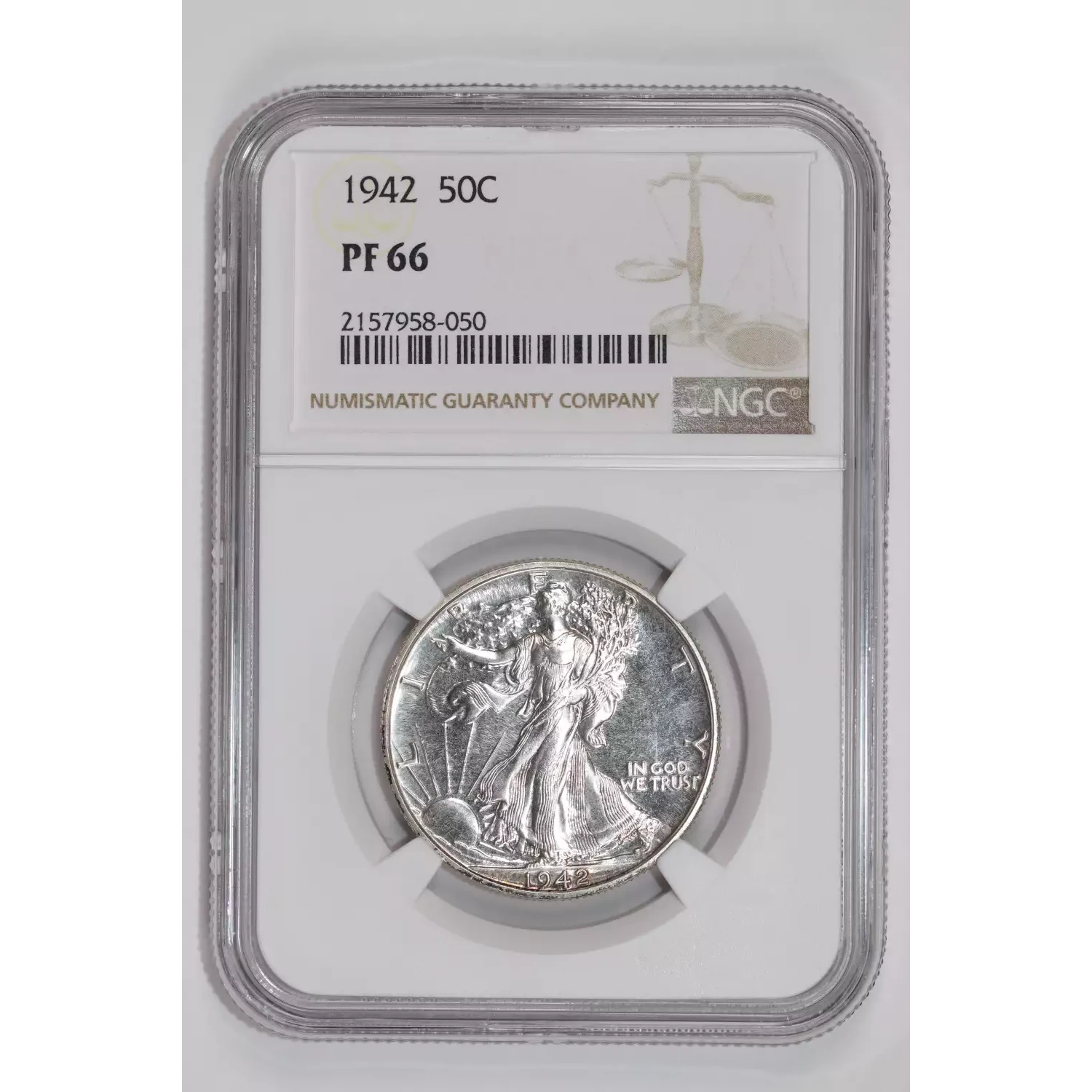 1942 PROOF WALKING LIBERTY HALF DOLLAR NGC PR66 - PQ, WHITE COIN!