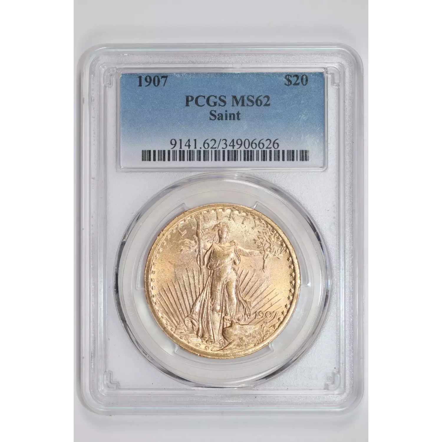 1907 $20 GOLD SAINT GAUDENS DOUBLE EAGLE PCGS MS62