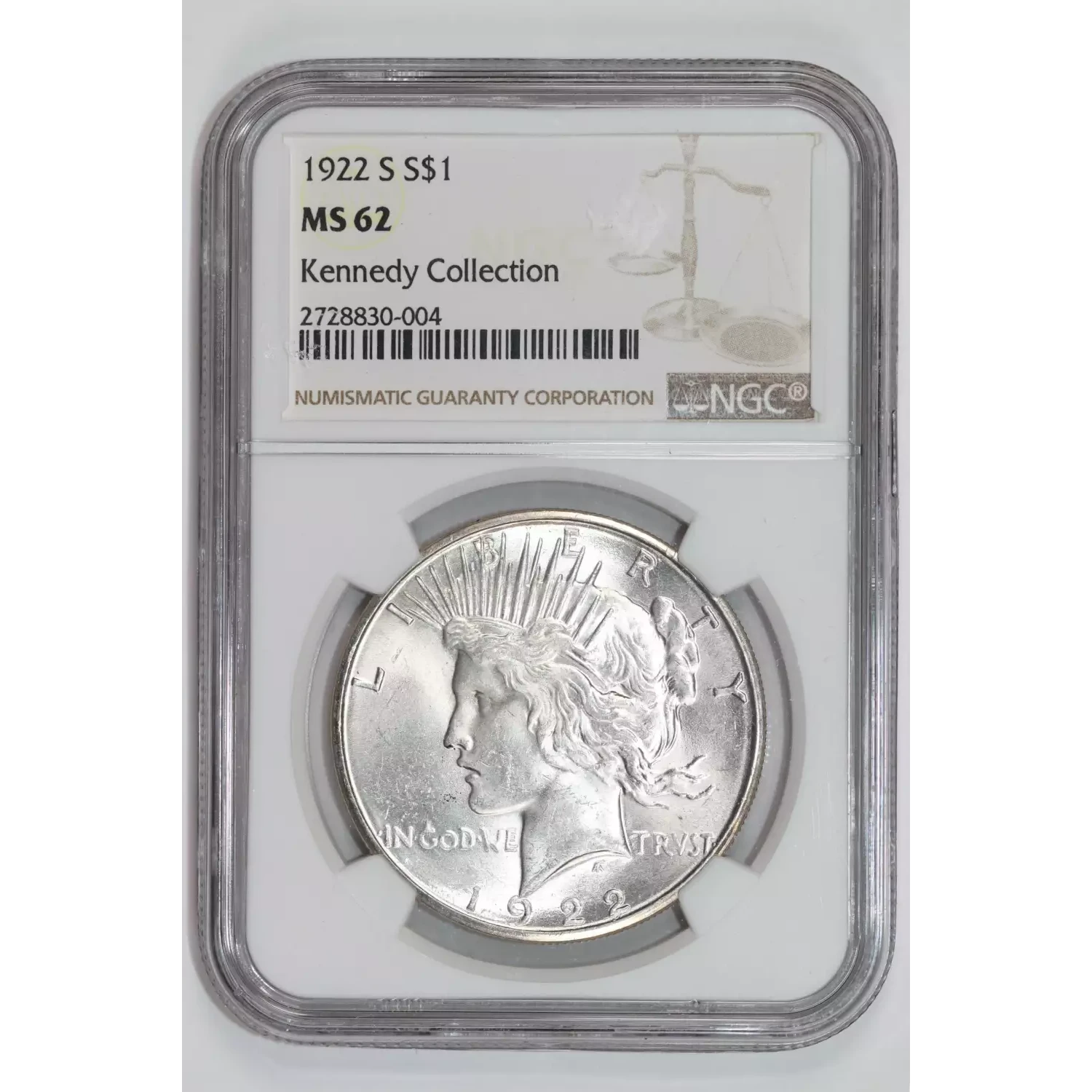 1922-S PEACE DOLLAR NGC MS62 KENNEDY COLLECTION