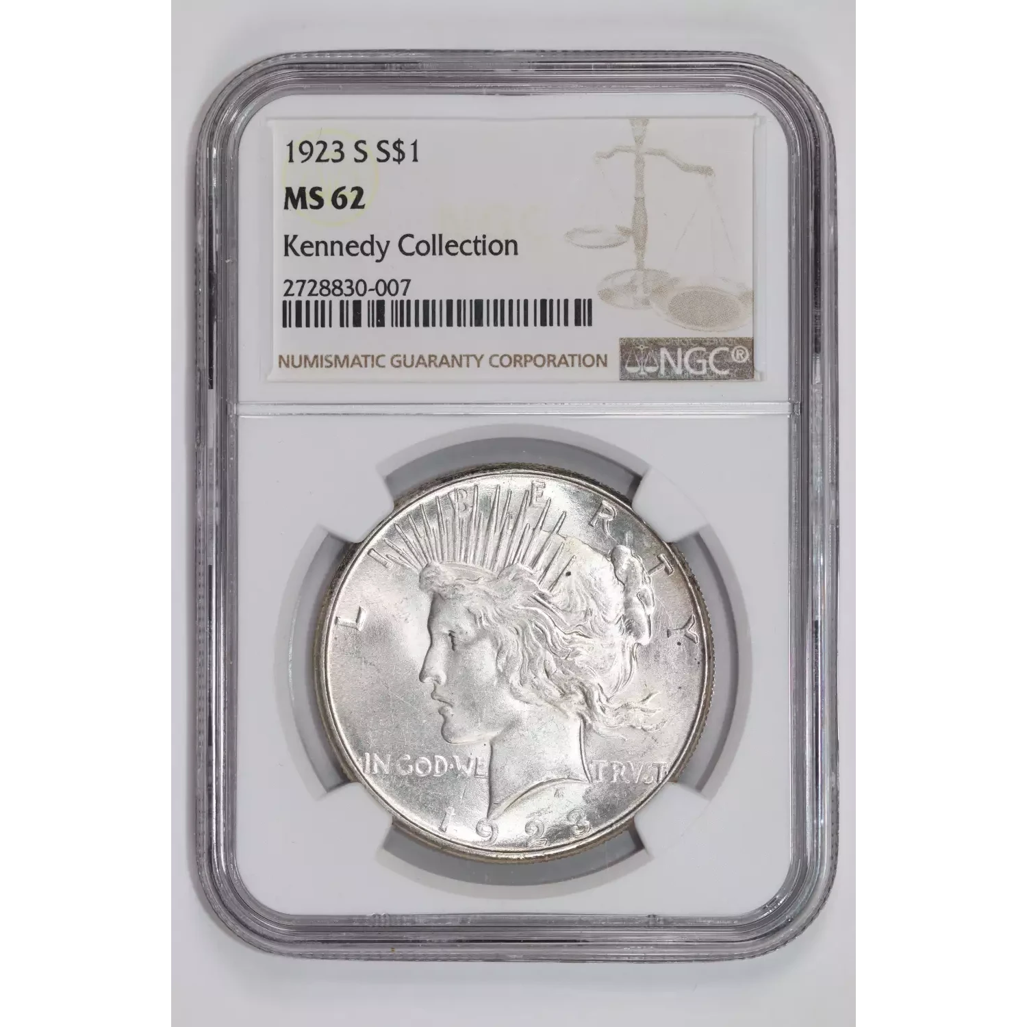 1923-S PEACE DOLLAR NGC MS62 KENNEDY COLLECTION