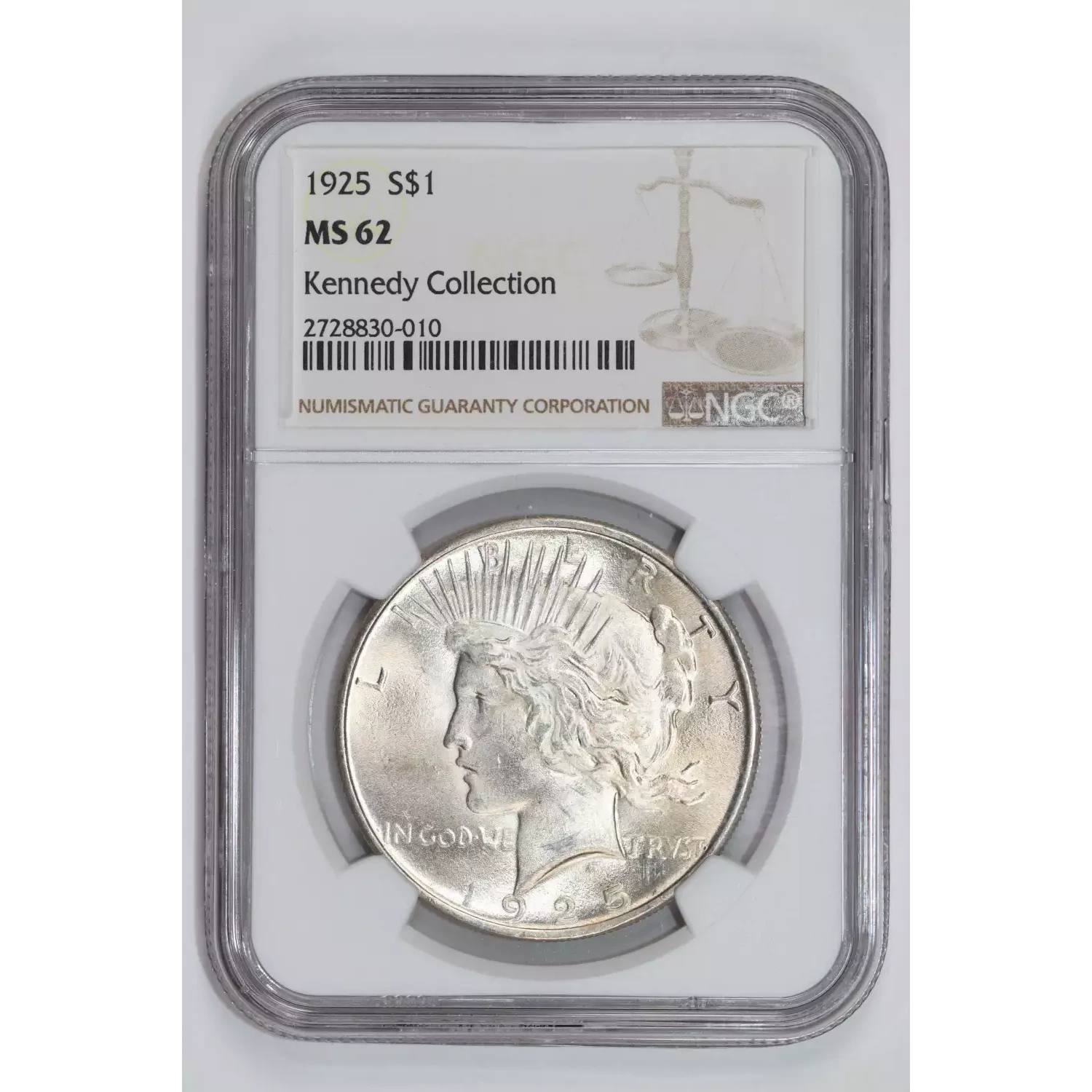 1925 PEACE DOLLAR NGC MS62 KENNEDY COLLECTION
