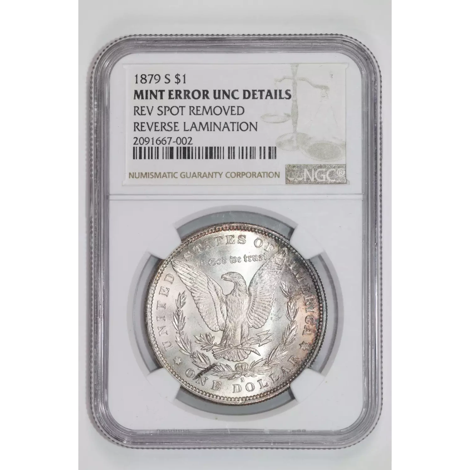 1879-S MORGAN DOLLAR REVERSE LAMINATION MINT ERROR NGC UNC DETAILS