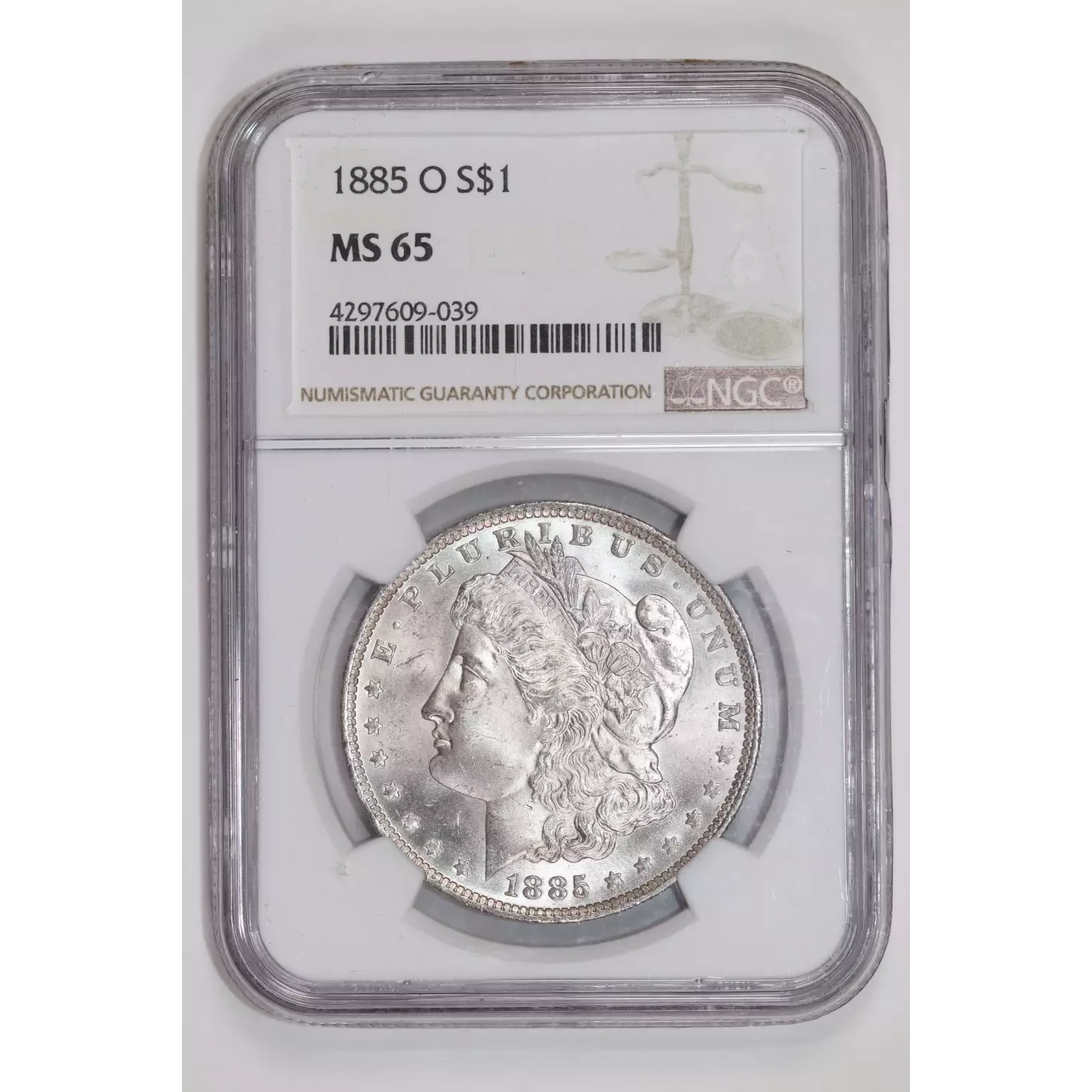 1885-O MORGAN DOLLAR NGC MS65 PRETTY RAINBOW REVERSE!