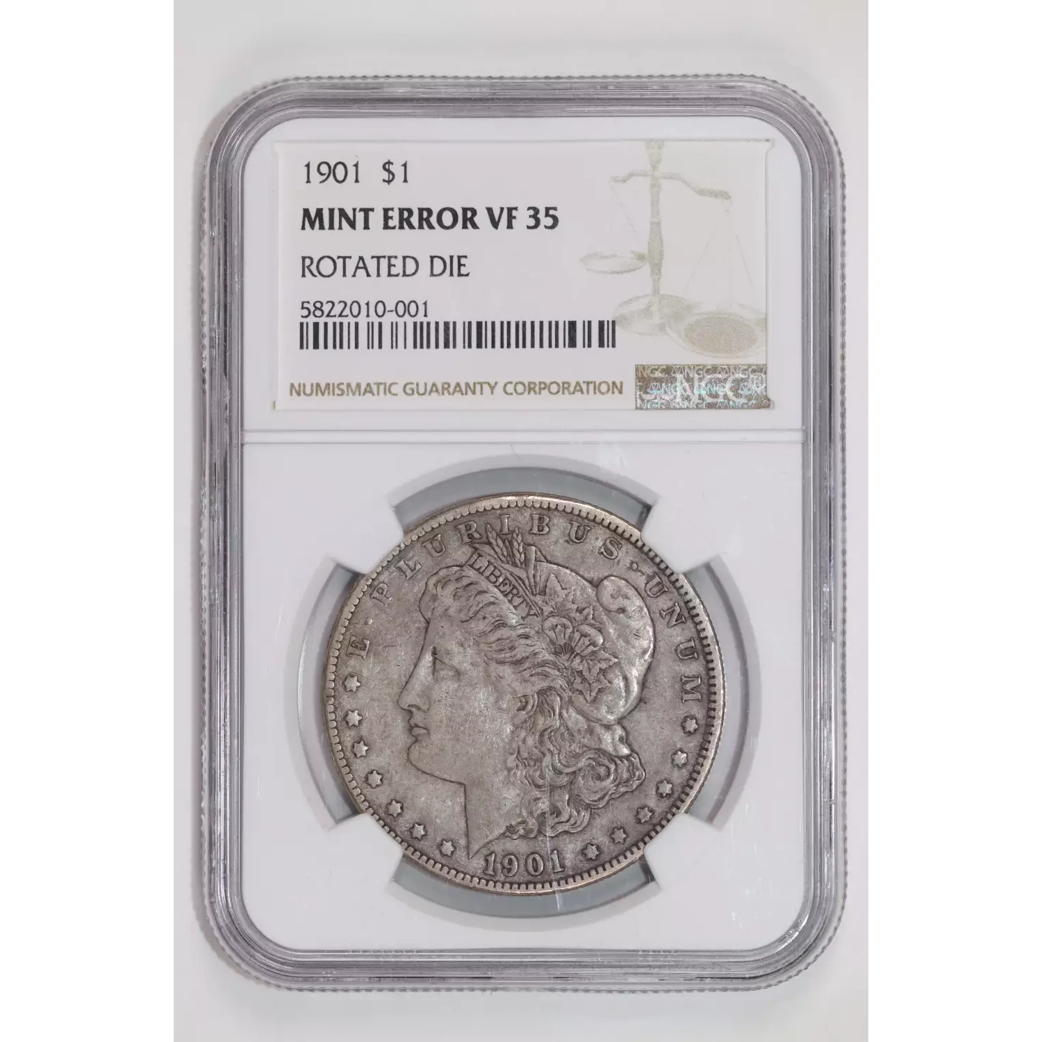 1901 MORGAN DOLLAR NGC VF35 - ROTATED DIES ERROR AND LABEL ERROR