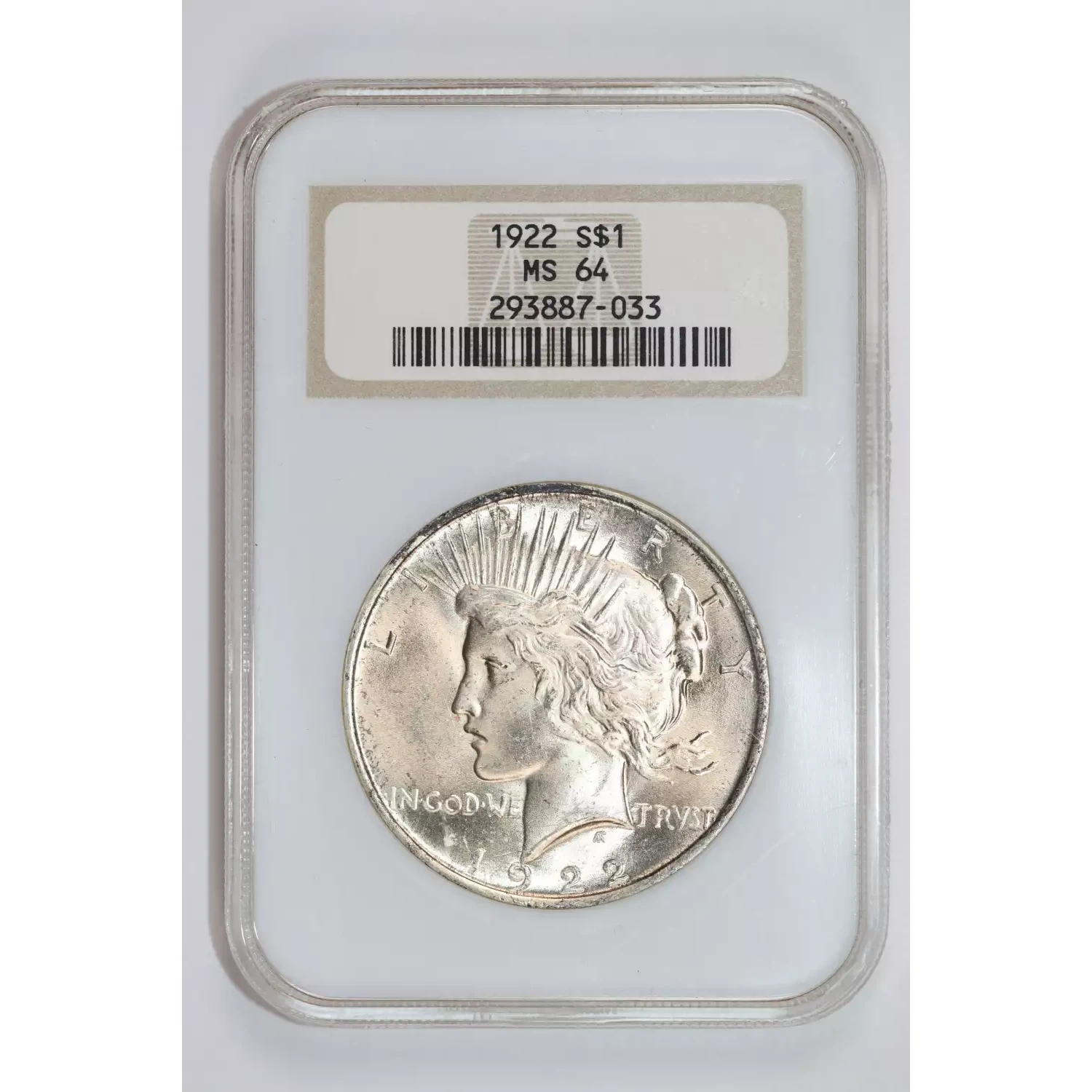 1922 PEACE DOLLAR NGC MS64 OLD FATTY HOLDER! LOOKS NICER!