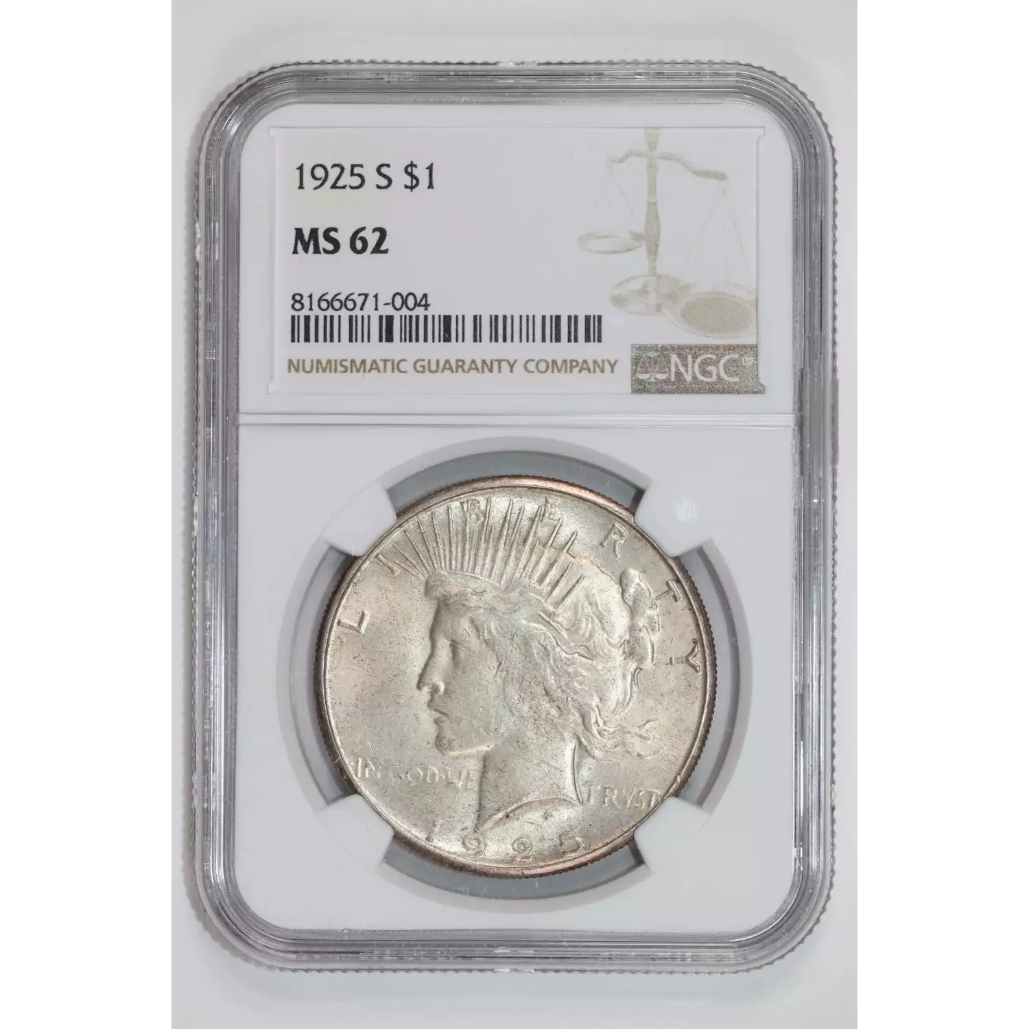 1925-S PEACE DOLLAR NGC MS62