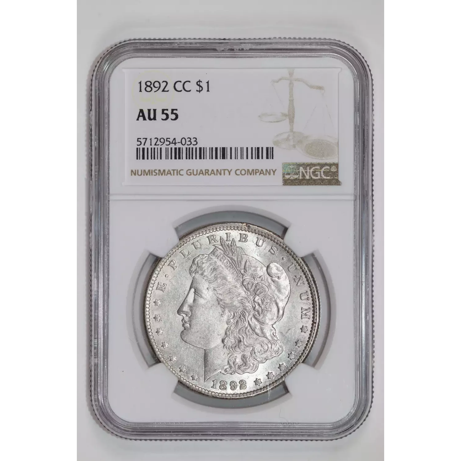 1892-CC MORGAN DOLLAR NGC AU55 - VERY PQ!