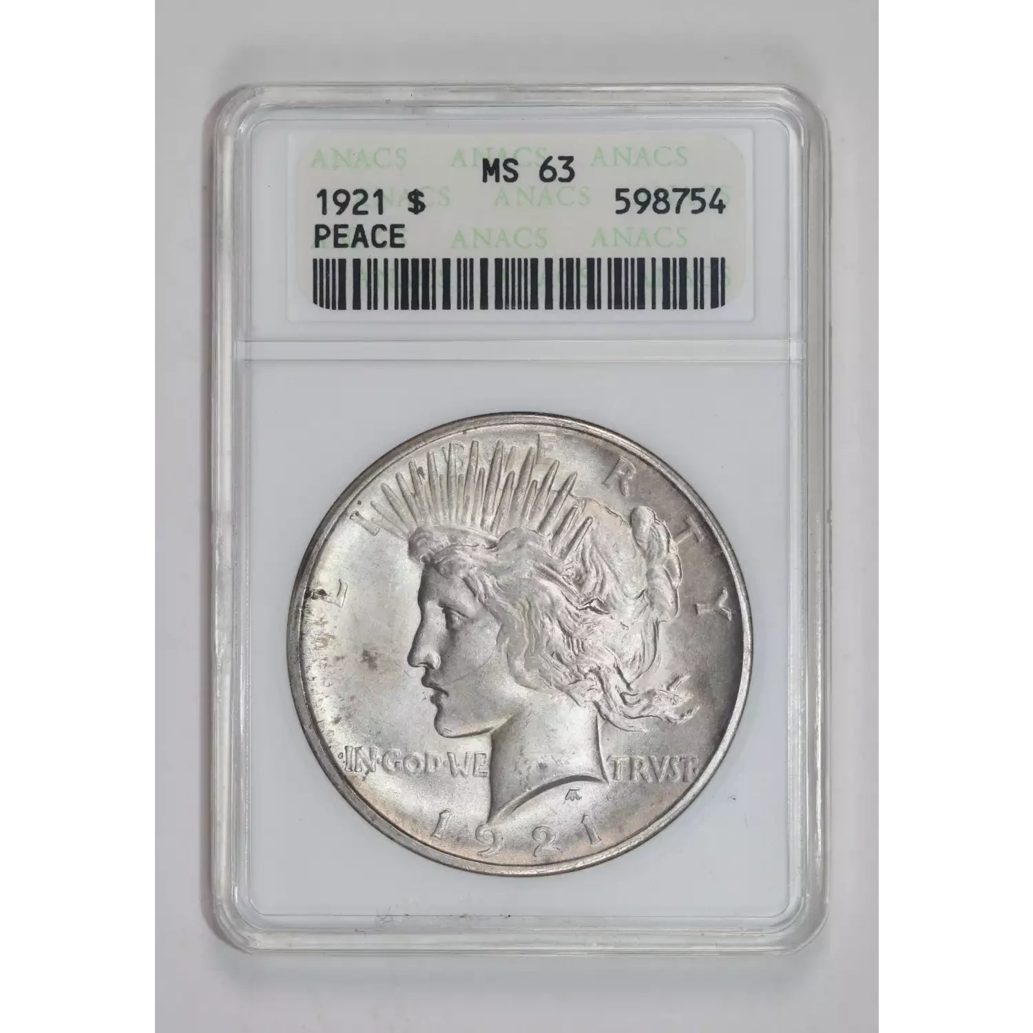 1921 HIGH RELIEF PEACE DOLLAR ANACS MS63 - NICE SATIN LOOK!