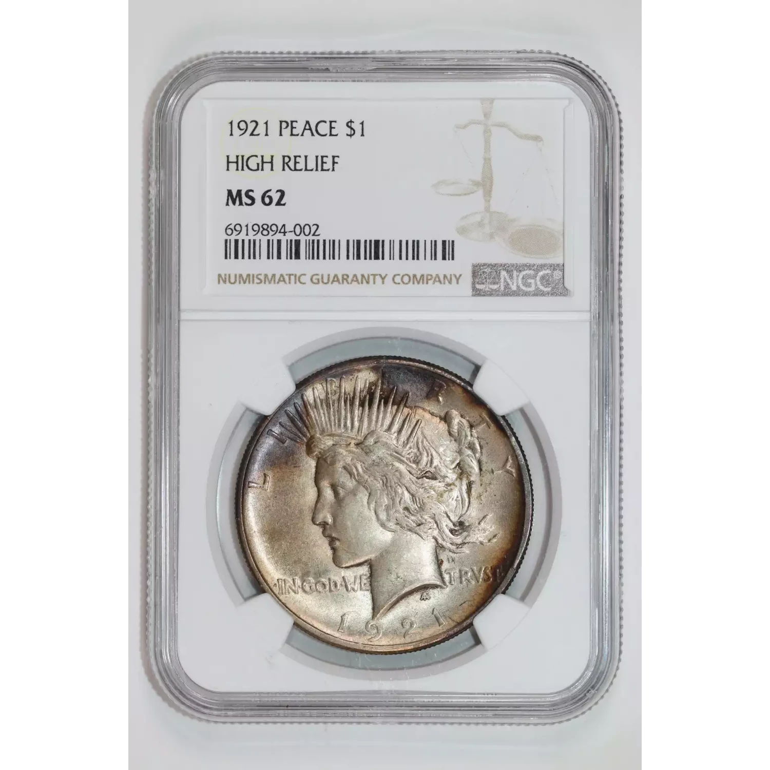 1921 HIGH RELIEF PEACE DOLLAR NGC MS62