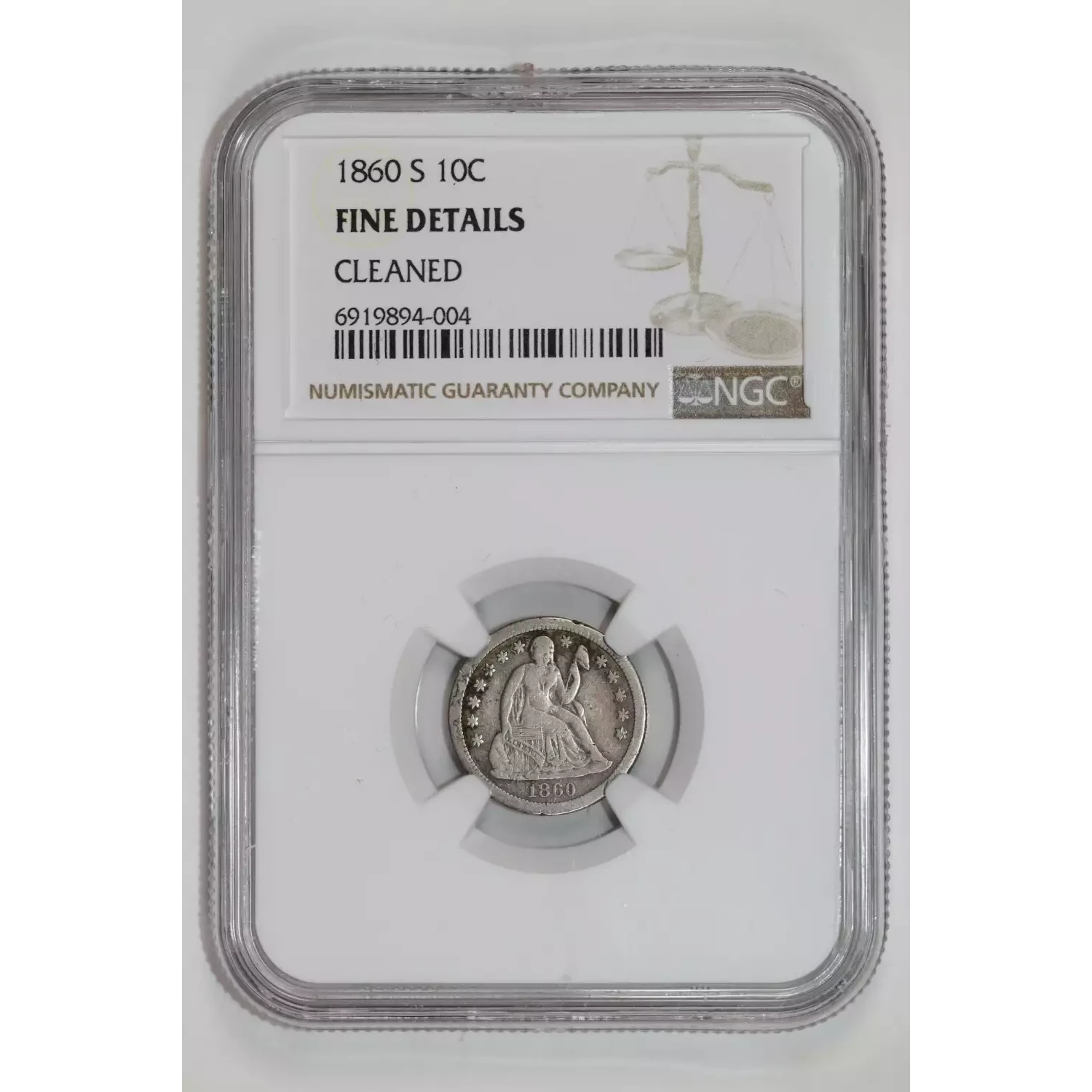 1860-S NO MOTTO SEATED LIBERTY DIME NGC FINE DETAILS
