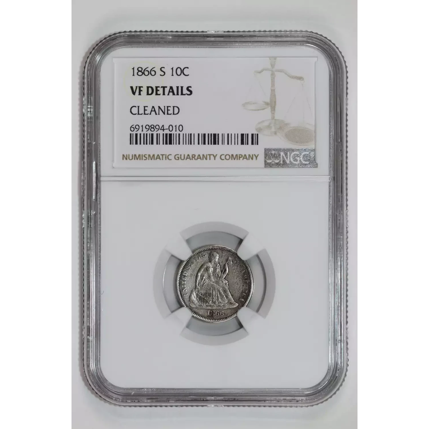 1866-S SEATED LIBERTY DIME NGC VF DETAILS
