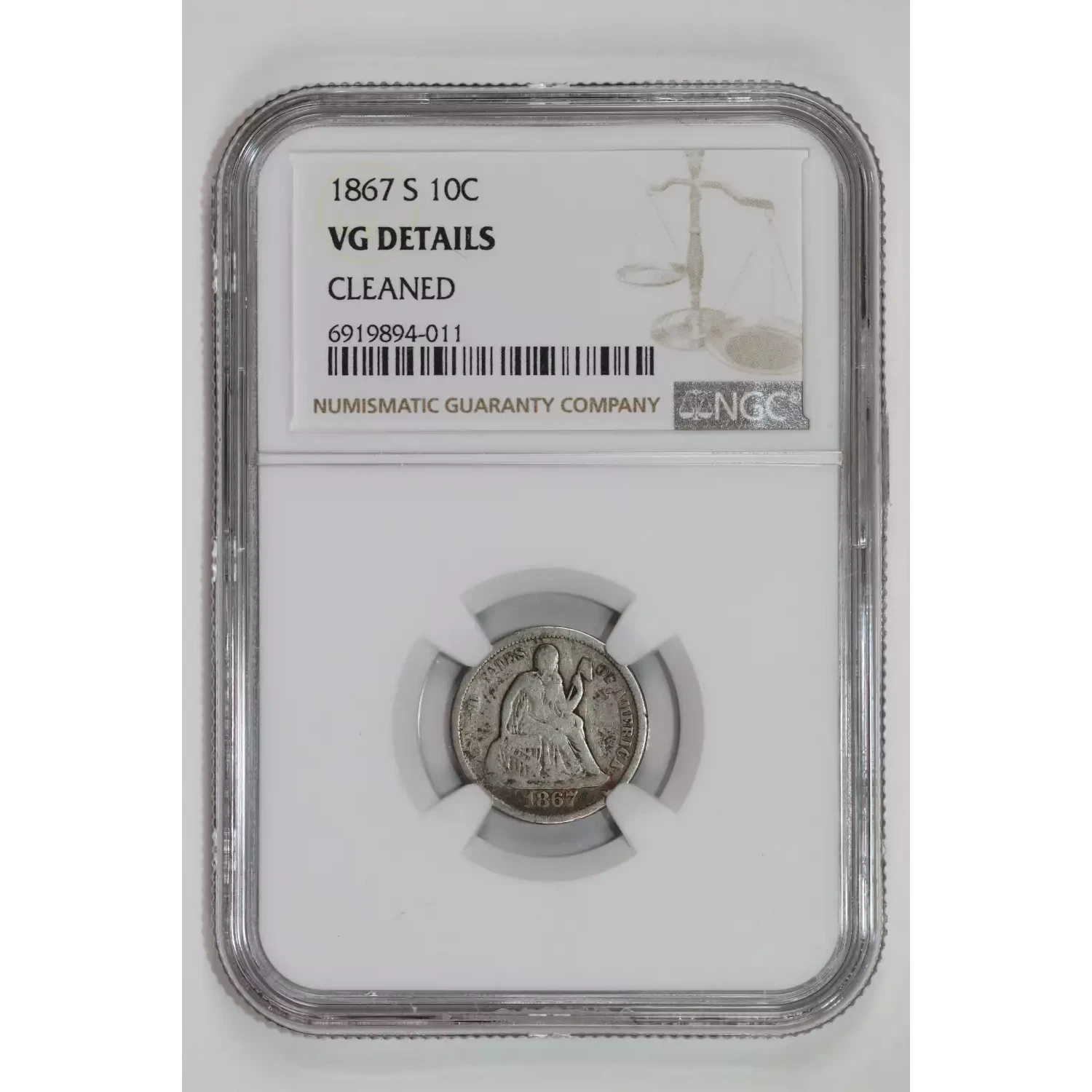 1867-S SEATED LIBERTY DIME NGC VG DETAILS