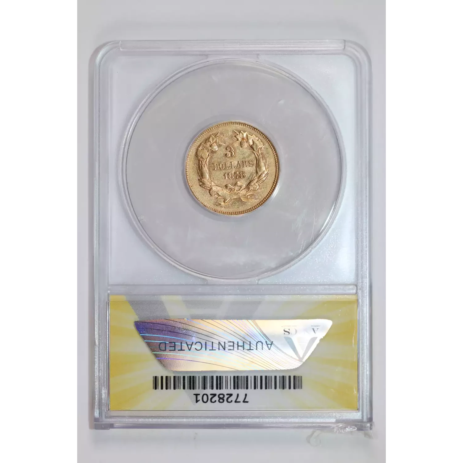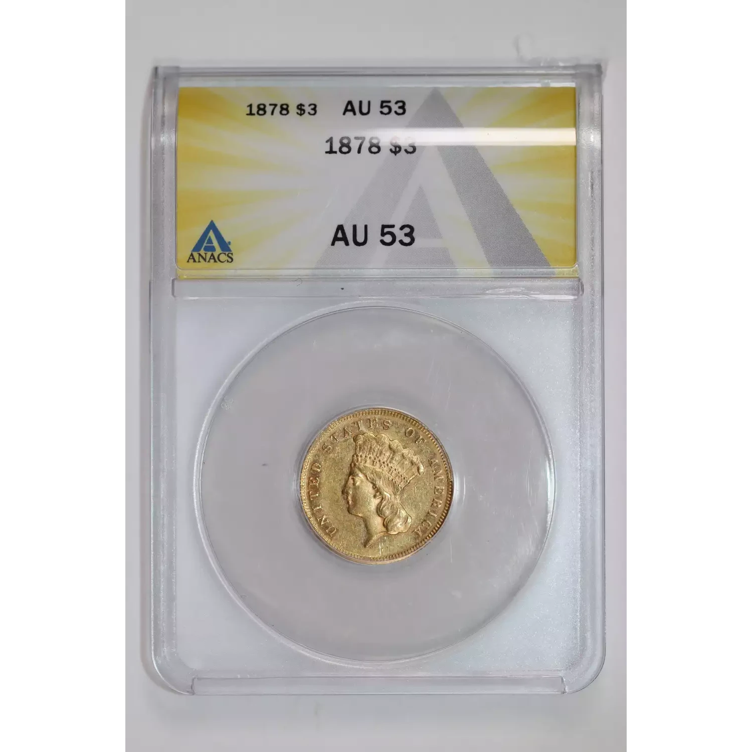 1878 Gold Three Dollars $3 Indian Princess Head ANACS AU-53