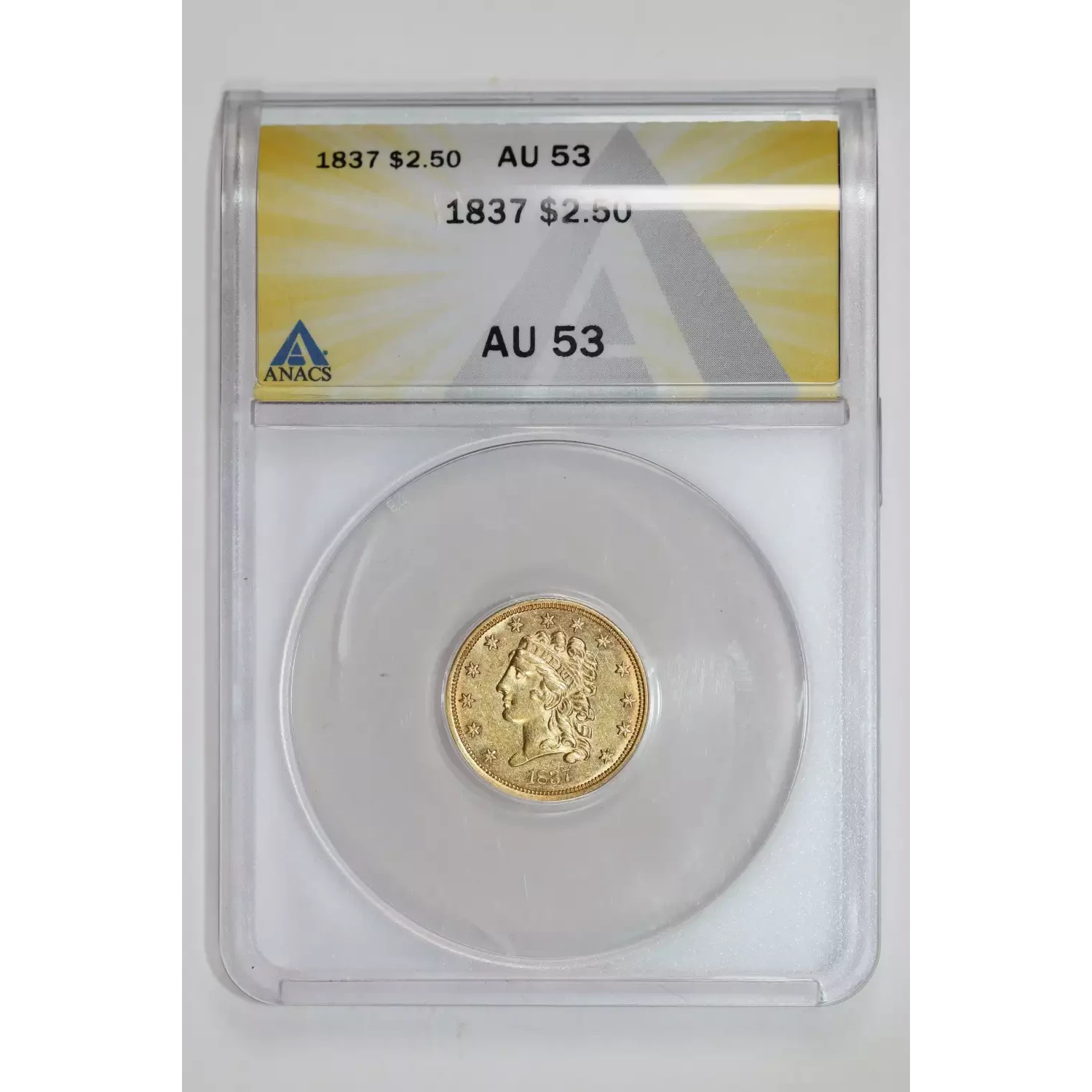 1837 CLASSIC HEAD $2.5 GOLD QUARTER EAGLE ANACS AU53 - FLASHY PQ!