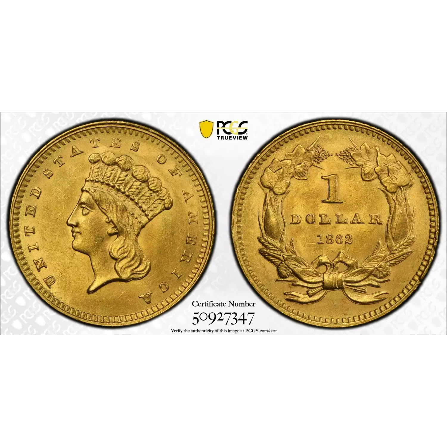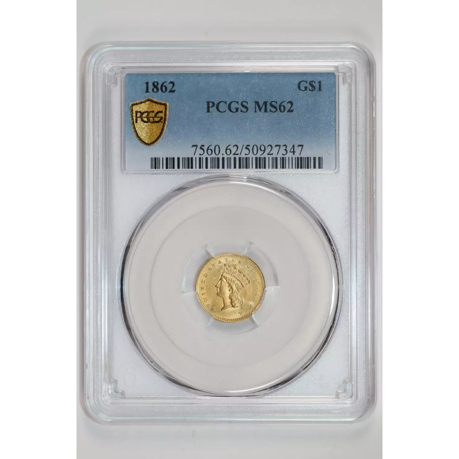 1862 TYPE 3 GOLD DOLLAR PCGS MS62