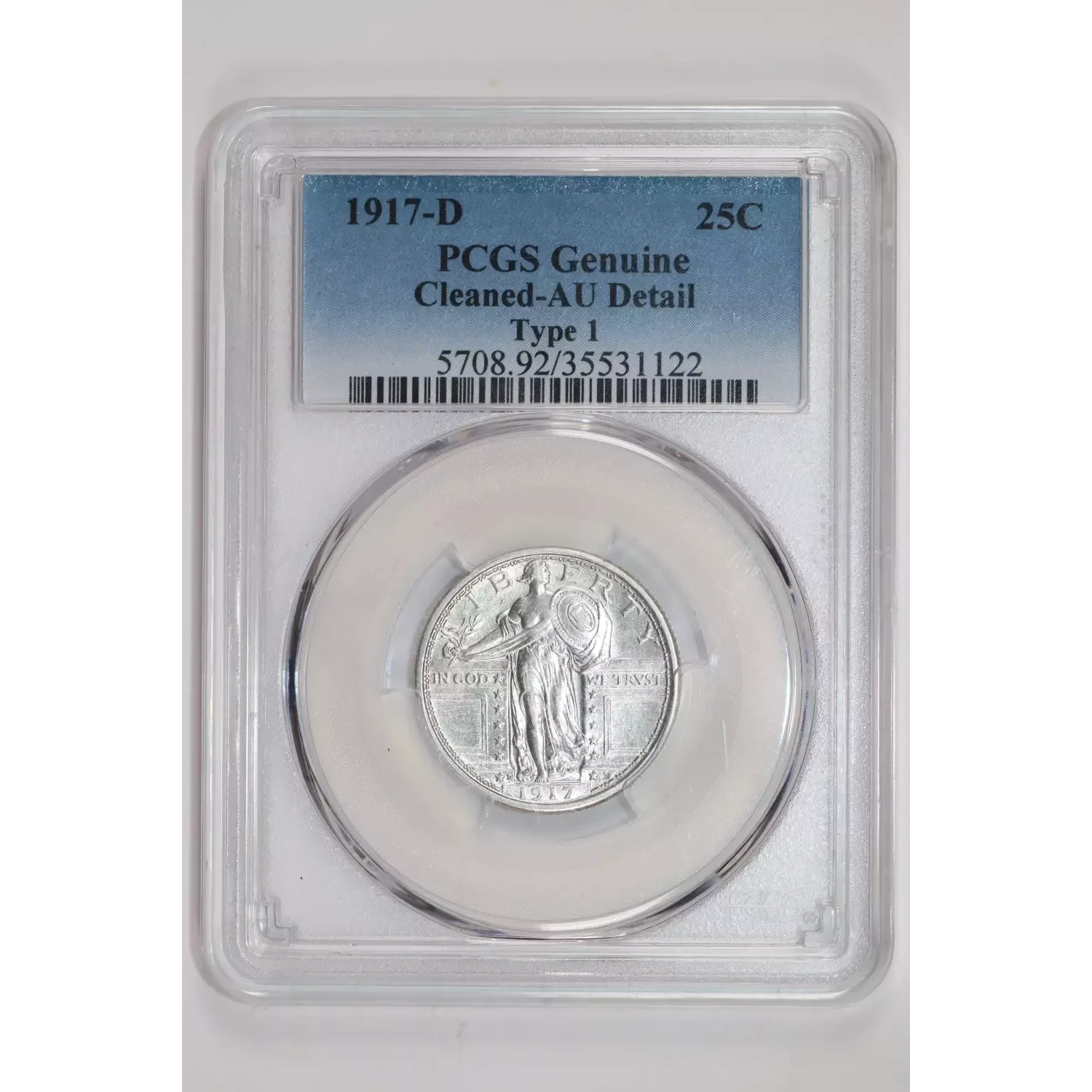 1917-D Quarter Dollars Standing Liberty Quarter PCGS Genuine - AU Details (92 - Cleaned) Type 1