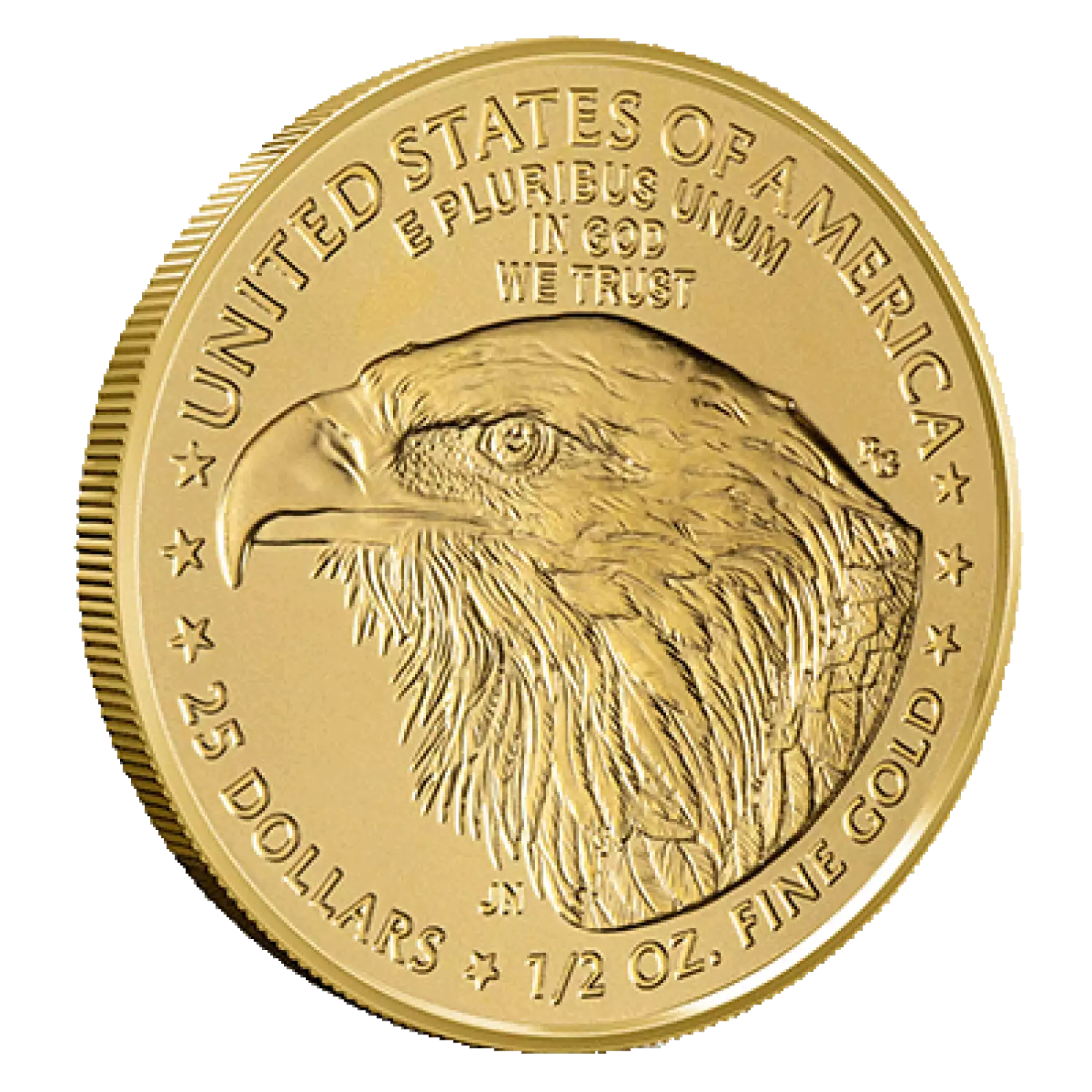 The 2025 1/2oz American Gold Eagle Coin is a staple of the gold bullion market, renowned for its beauty, quality, and liquidity. As one of the most popular gold coins in the world, it's an excellent addition to any portfolio or collection.