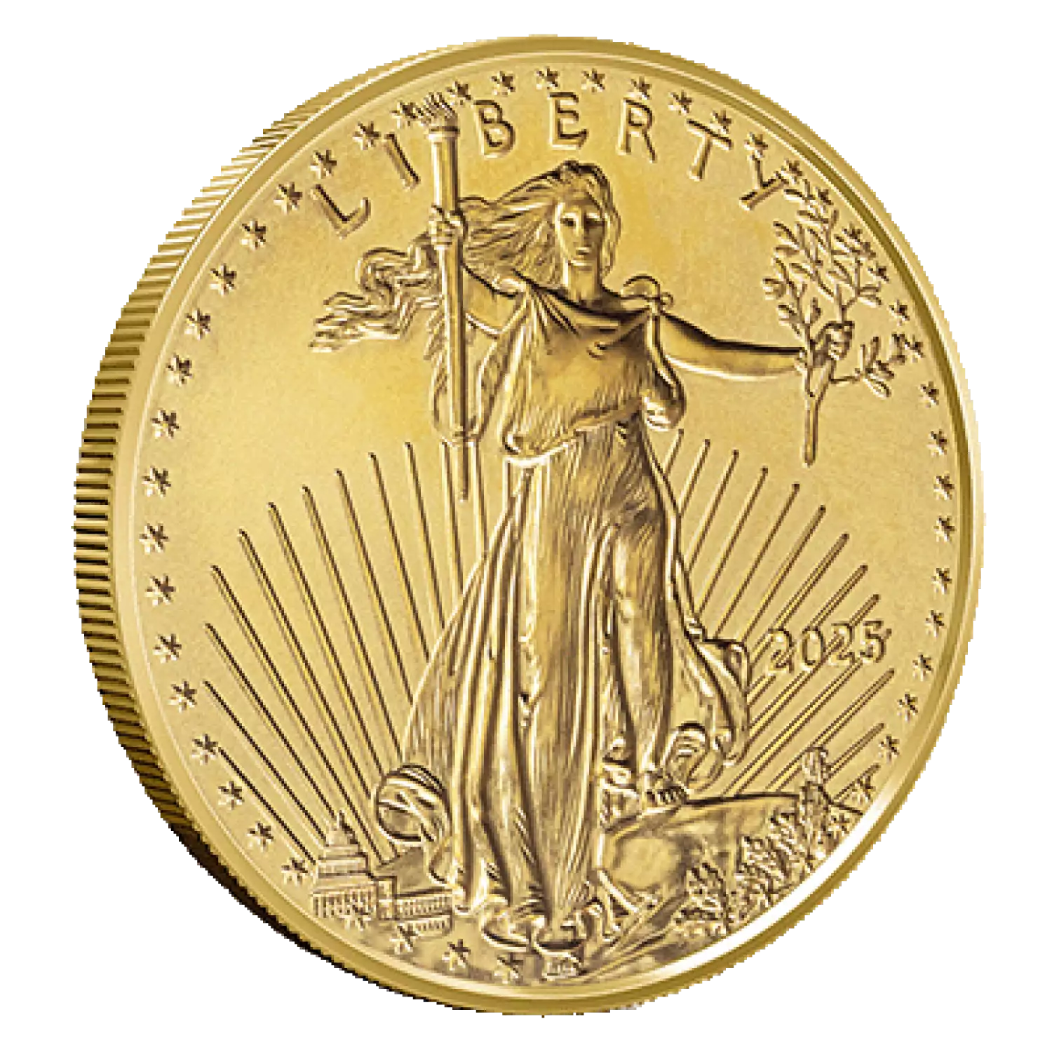 Each 2025 1/4oz American Gold Eagle is minted from 22-karat gold, expertly blended with 3% silver and 5.33% copper for added strength and durability. The result is a coin of exceptional beauty, with intricate details that shine brightly in high-relief.