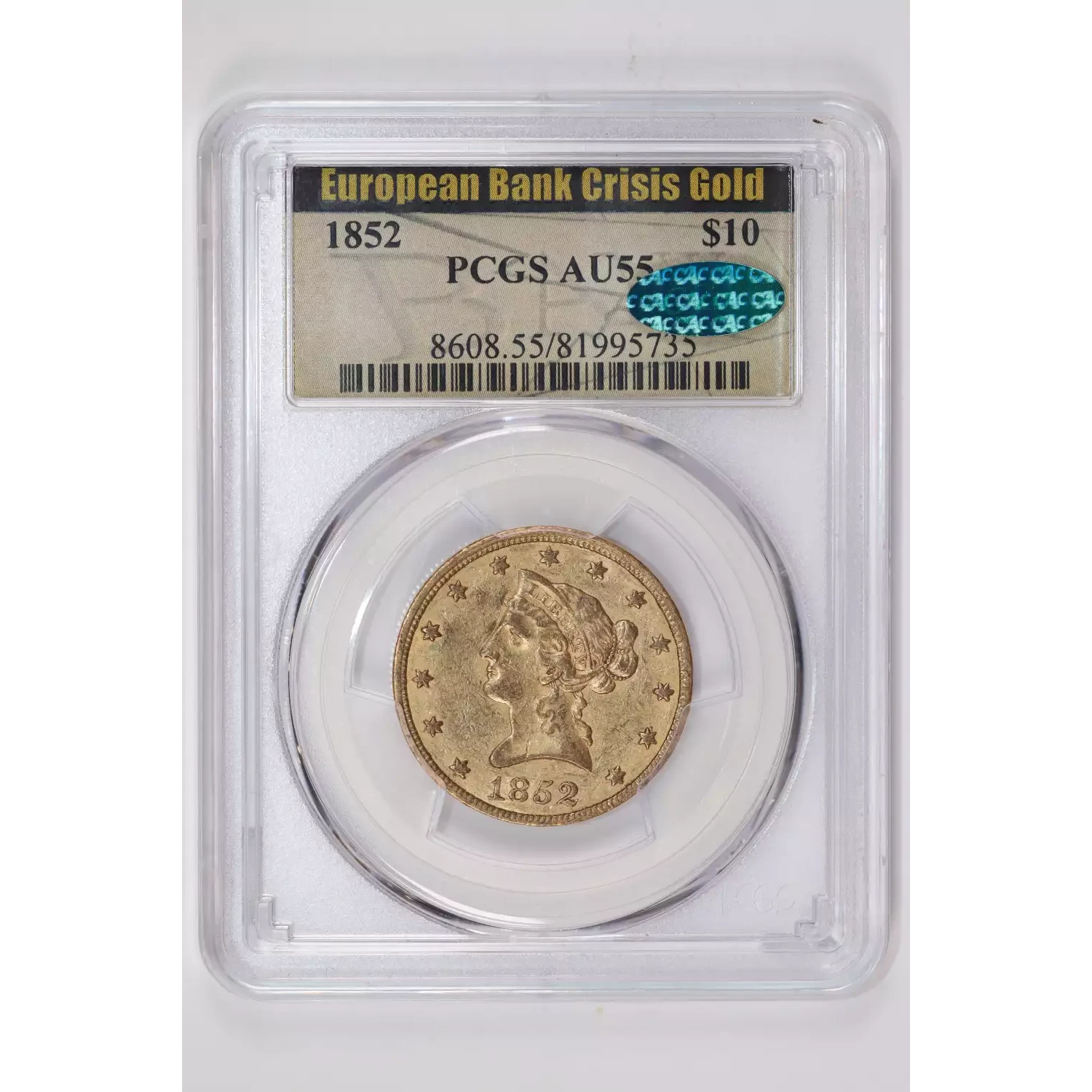 1852 $10 GOLD LIBERTY EAGLE PCGS AU55 CAC