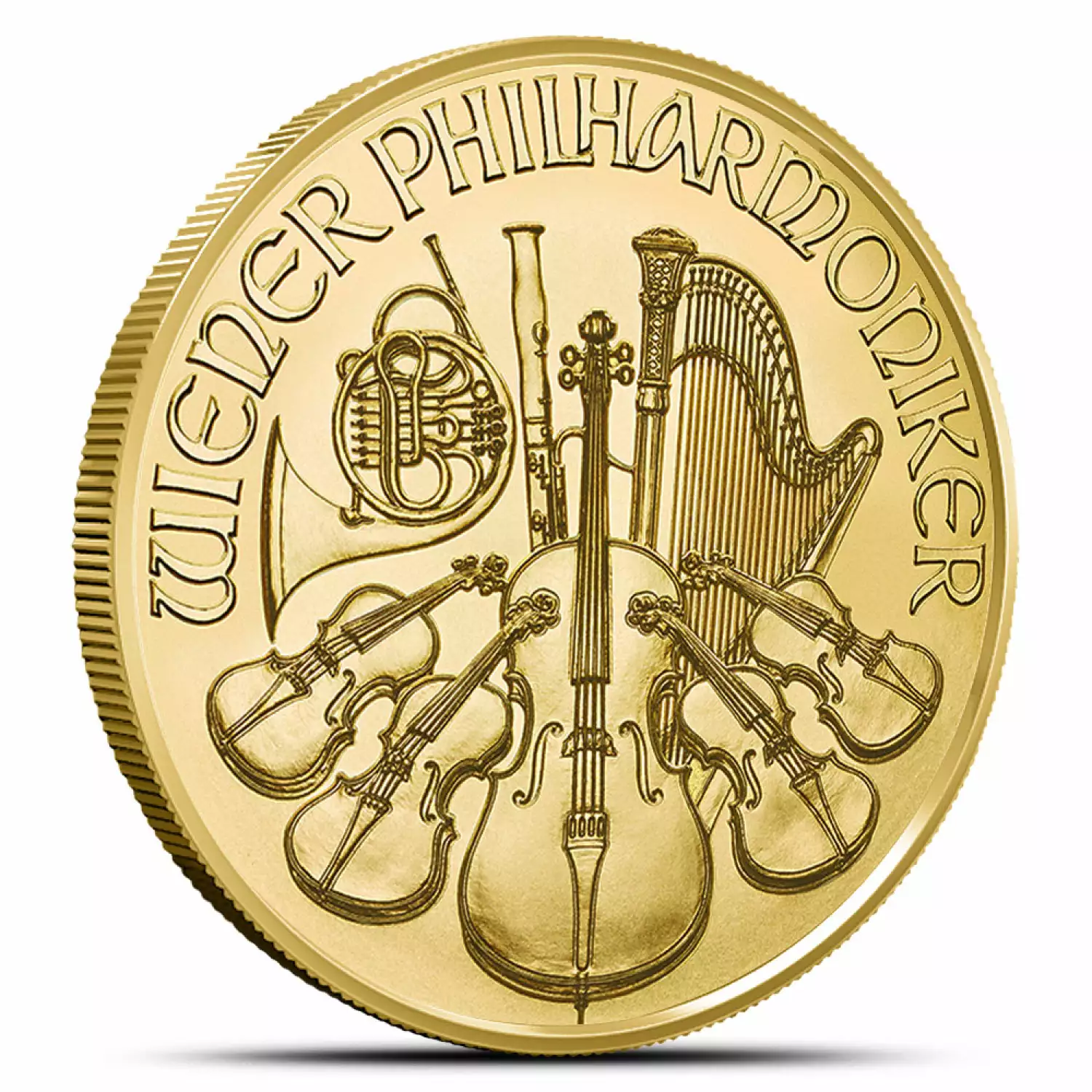 The 2025 1/2oz Austrian Gold Philharmonic is a mesmerizing gold bullion coin that embodies the rich cultural heritage of Austria. Introduced in 1989, the Philharmonic coin series has become a highly sought-after collectible and investment piece among gold enthusiasts and collectors alike.