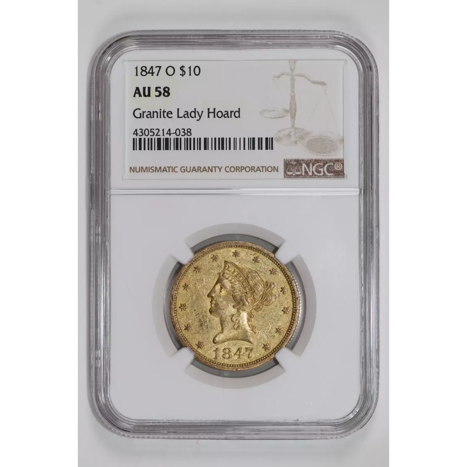 1847-O $10 GOLD LIBERTY EAGLE NGC AU58 GRANITE LADY HOARD