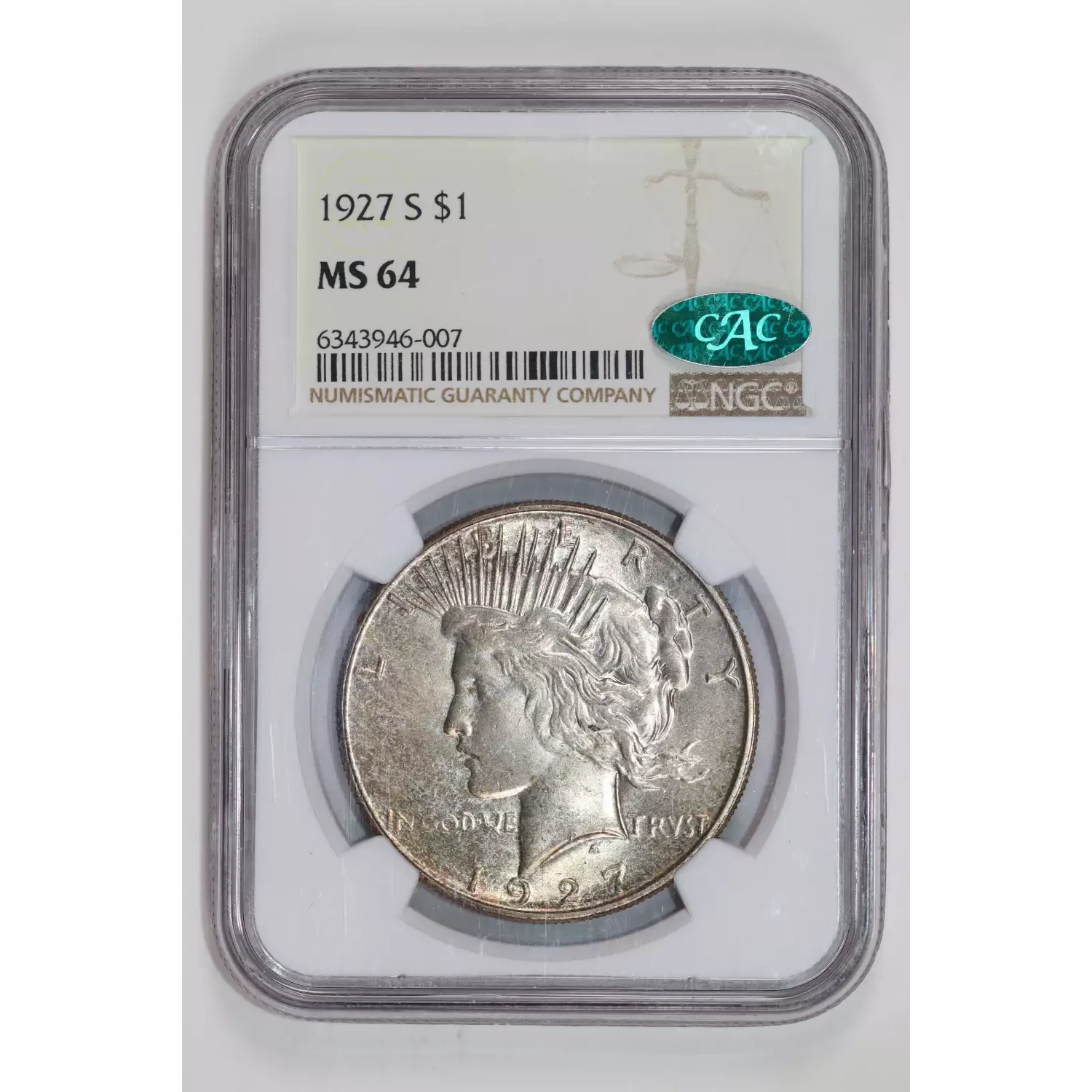 1927-S PEACE DOLLAR NGC MS64 CAC - VERY PQ!