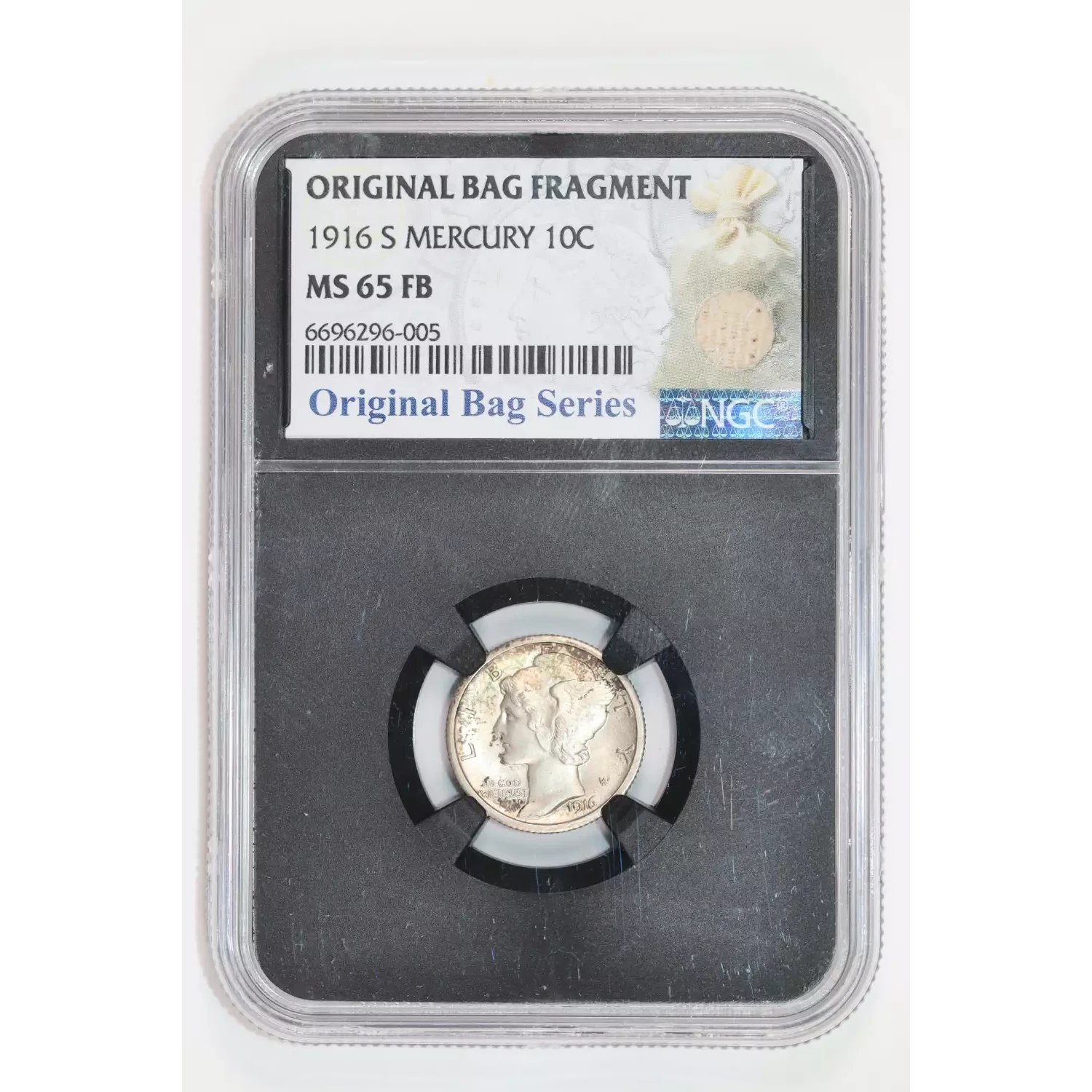 1916-S MERCURY DIME NGC MS65 FB ORIGINAL BAG FRAGMENT SERIES