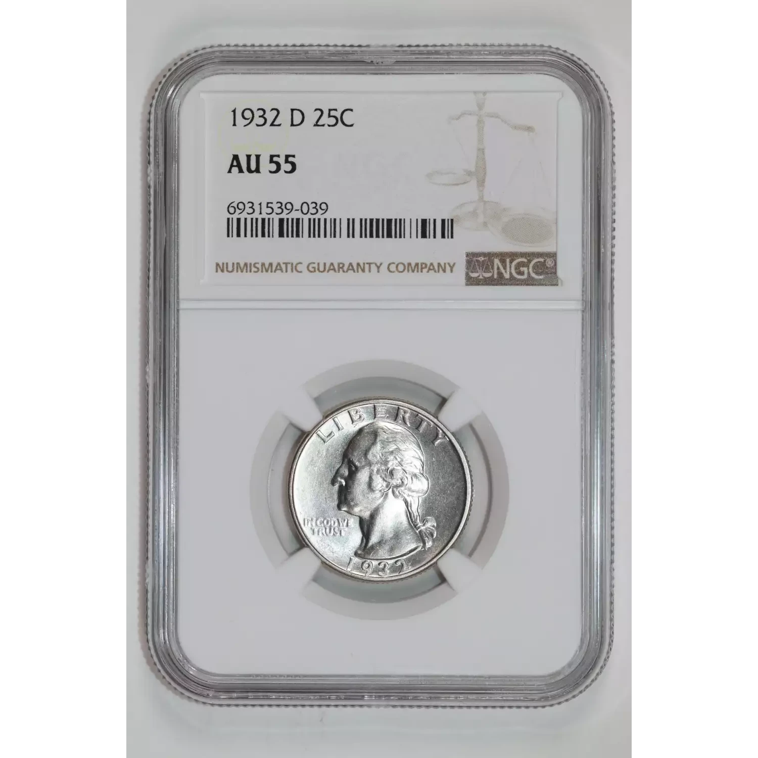1932-D Quarter Dollars Silver Coinage NGC AU-55