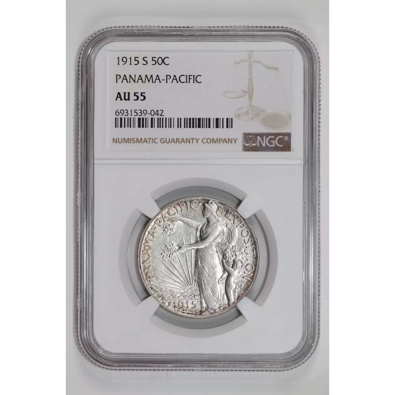 1915-S PANAMA PACIFIC SILVER COMMEMORATIVE HALF DOLLAR NGC AU55