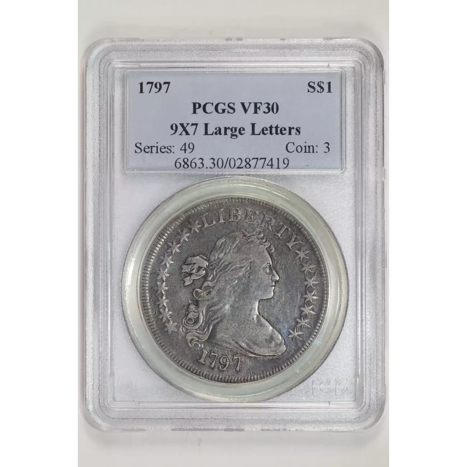 1797 Silver Dollars Draped Bust PCGS VF-30 9x7 Stars, Large Letters