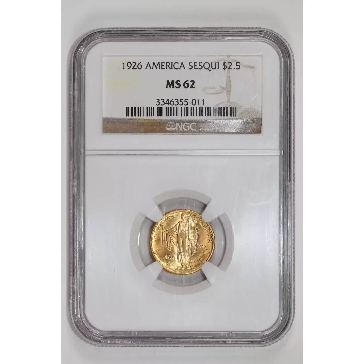 1926 $2.5 GOLD SESQUICENTENNIAL COMMEMORATIVE NGC MS62