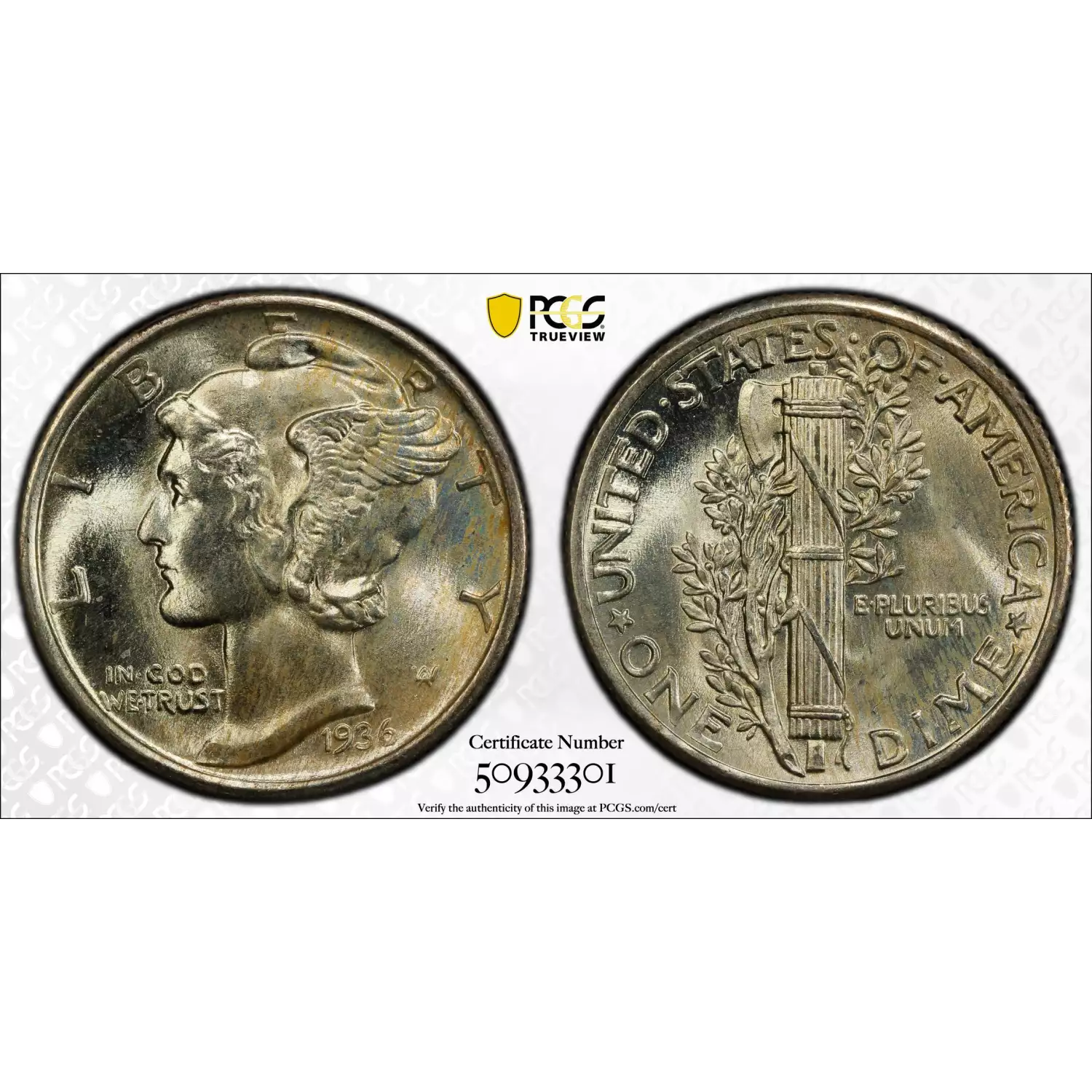 1936 Dimes Winged Liberty Head or Mercury PCGS MS-67+ FB CAC