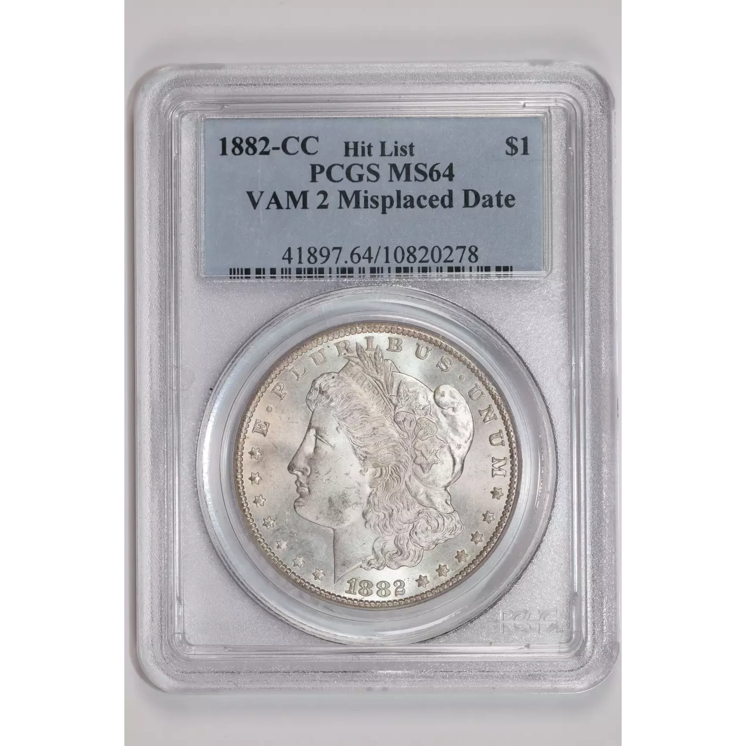 1882-CC VAM-2 "MISPLACED DATE" HIT LIST 40 MORGAN DOLLAR PCGS MS64