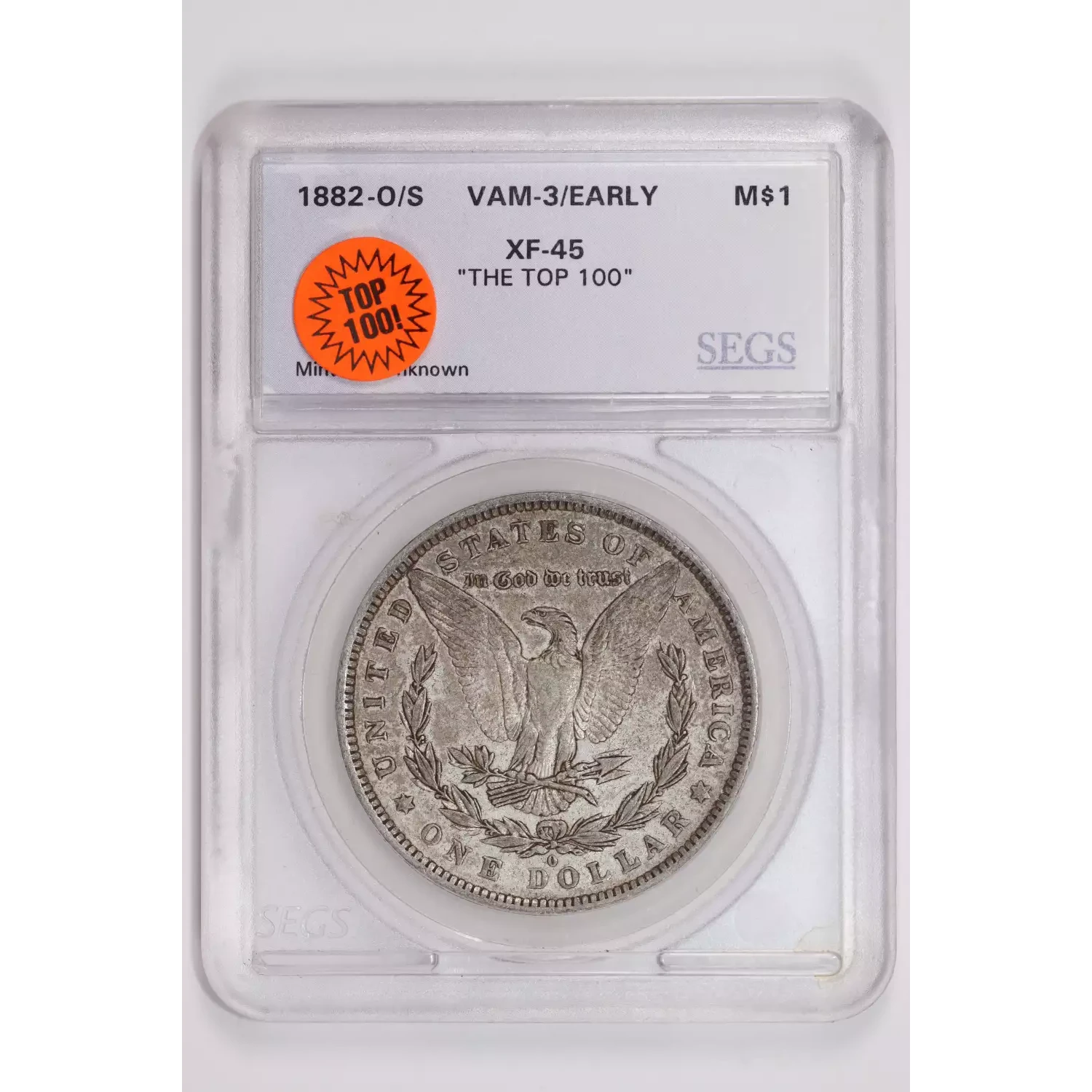 1882-O/S VAM-3 "O/S FLUSH" TOP 100 MORGAN DOLLAR RAW CHOICE XF