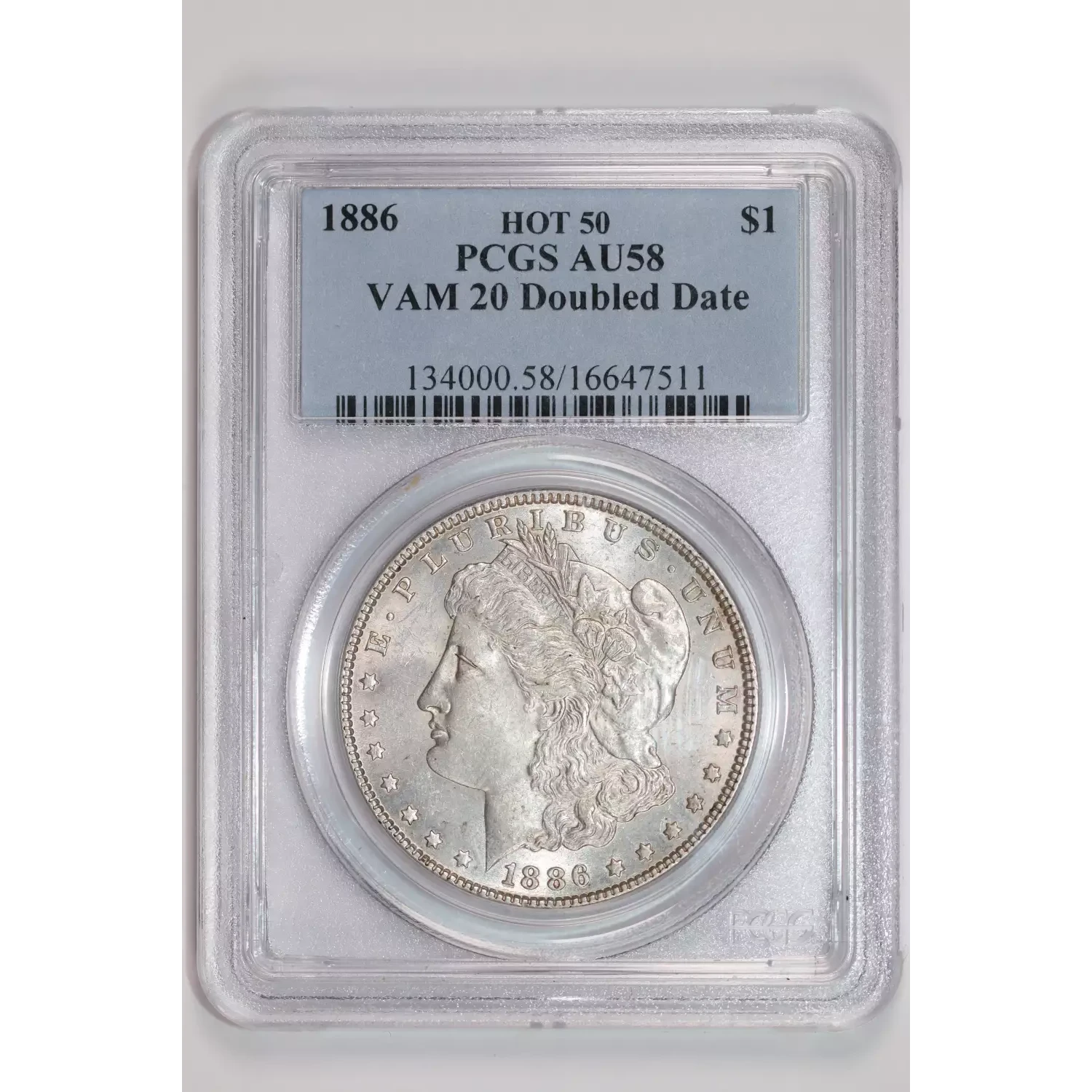 1886 VAM-20 "DOUBLED DATE" HOT 50 MORGAN DOLLAR PCGS AU58