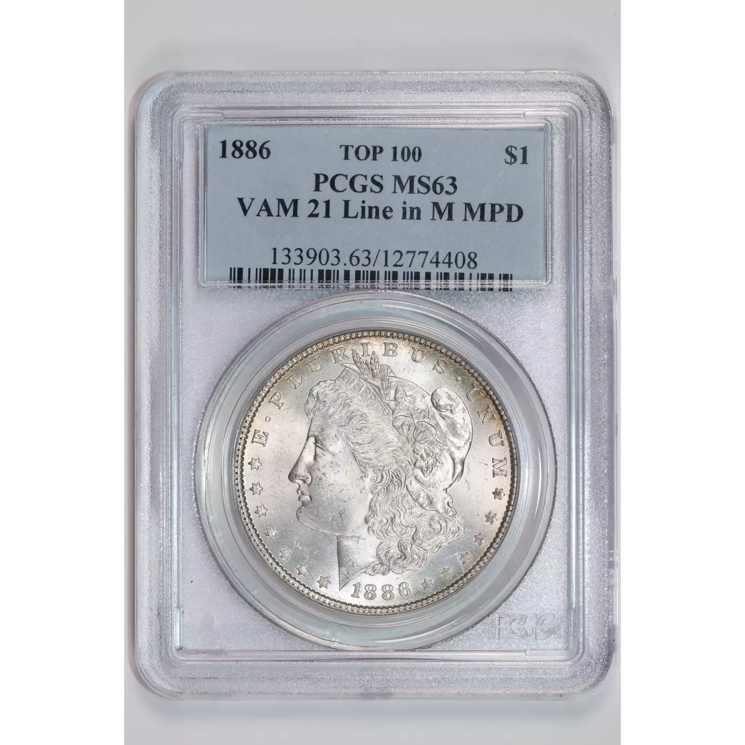 1886 VAM-21 "LINE IN M" TOP 100 MORGAN DOLLAR PCGS MS63