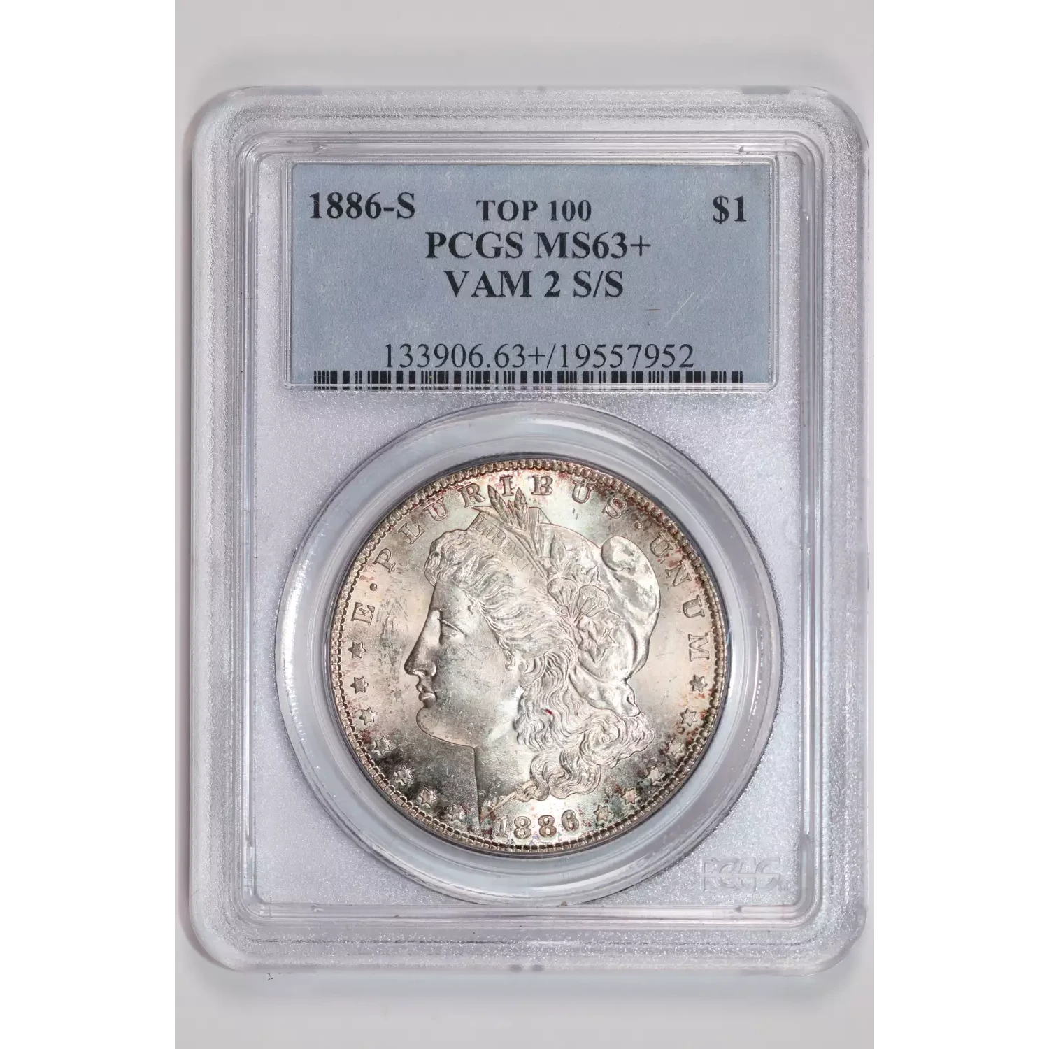 1886-S VAM-2 "S/S" TOP 100 MORGAN DOLLAR PCGS MS63+ LOOKS NICER!