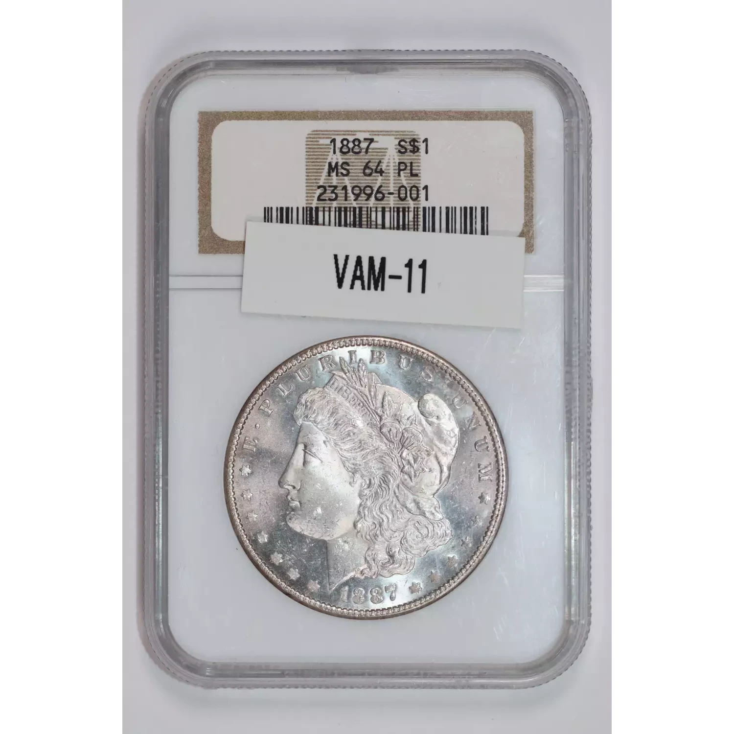1887 VAM-11 MORGAN DOLLAR NGC MS64 PL