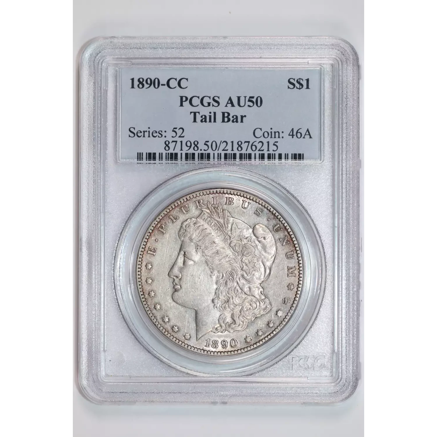 1890-CC Morgan Silver Dollar PCGS AU-50 Tailbar
