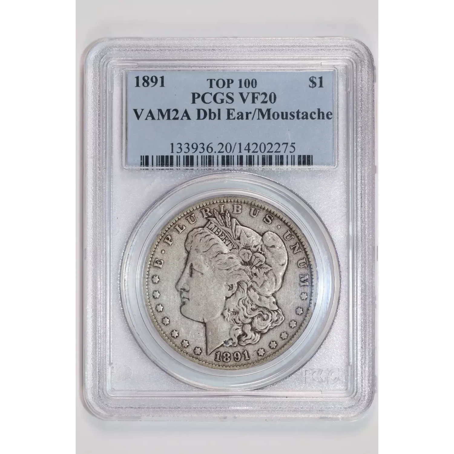 1891 VAM-2A "DOUBLED EAR/MOUSTACHE" TOP 100 MORGAN DOLLAR PCGS VF20