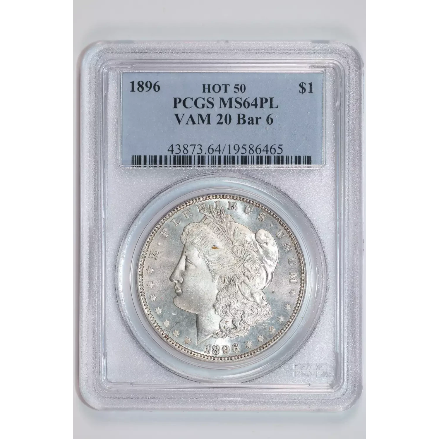 1896 VAM-20 "BAR 6" HOT 50 MORGAN DOLLAR PCGS MS64 PL