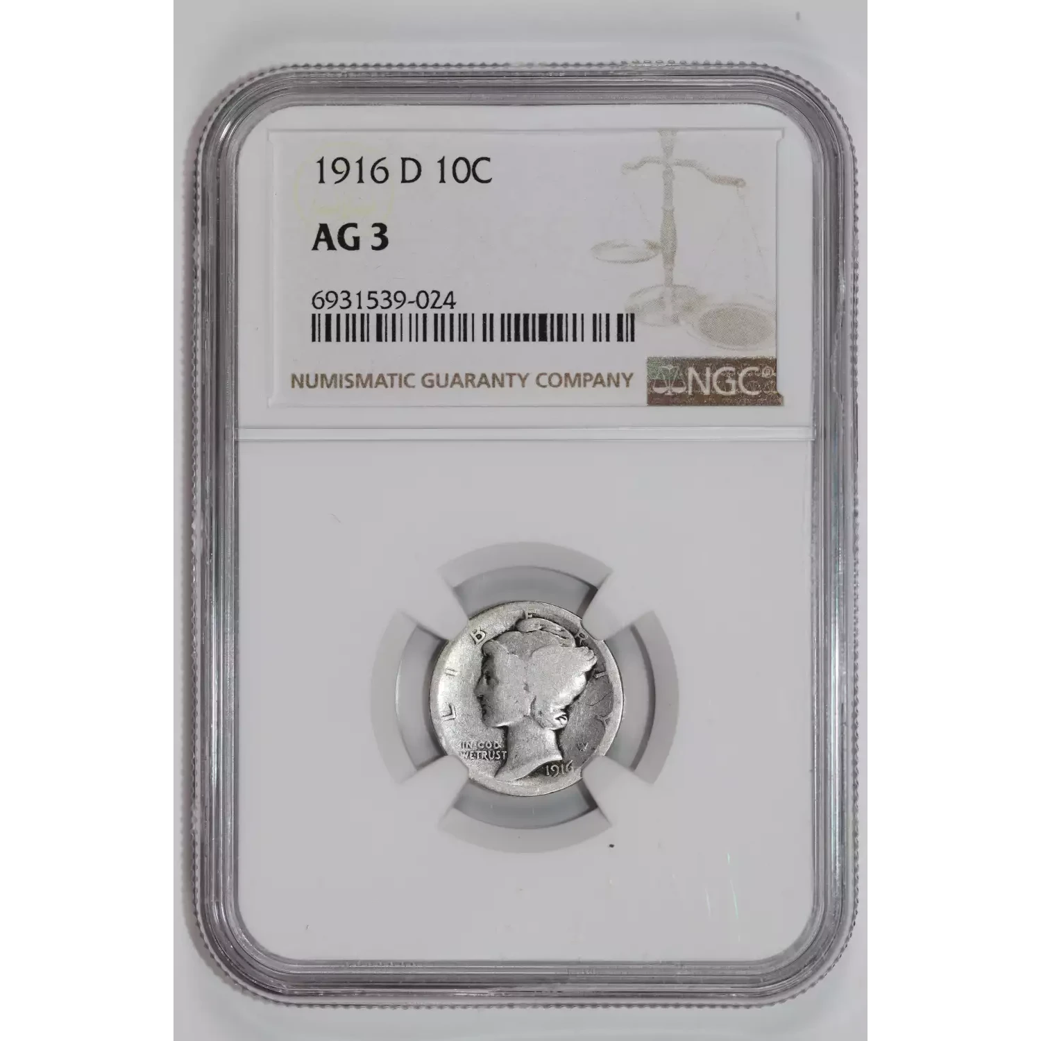1916-D Dimes Winged Liberty Head or Mercury NGC AG-3