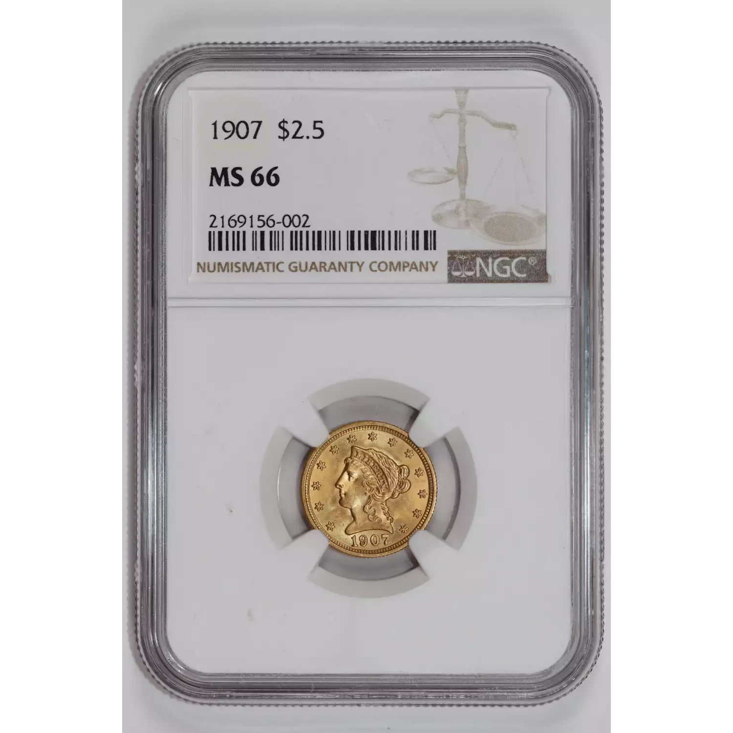 1907 $2.5 GOLD LIBERTY QUARTER EAGLE NGC MS66 - VERY PQ!