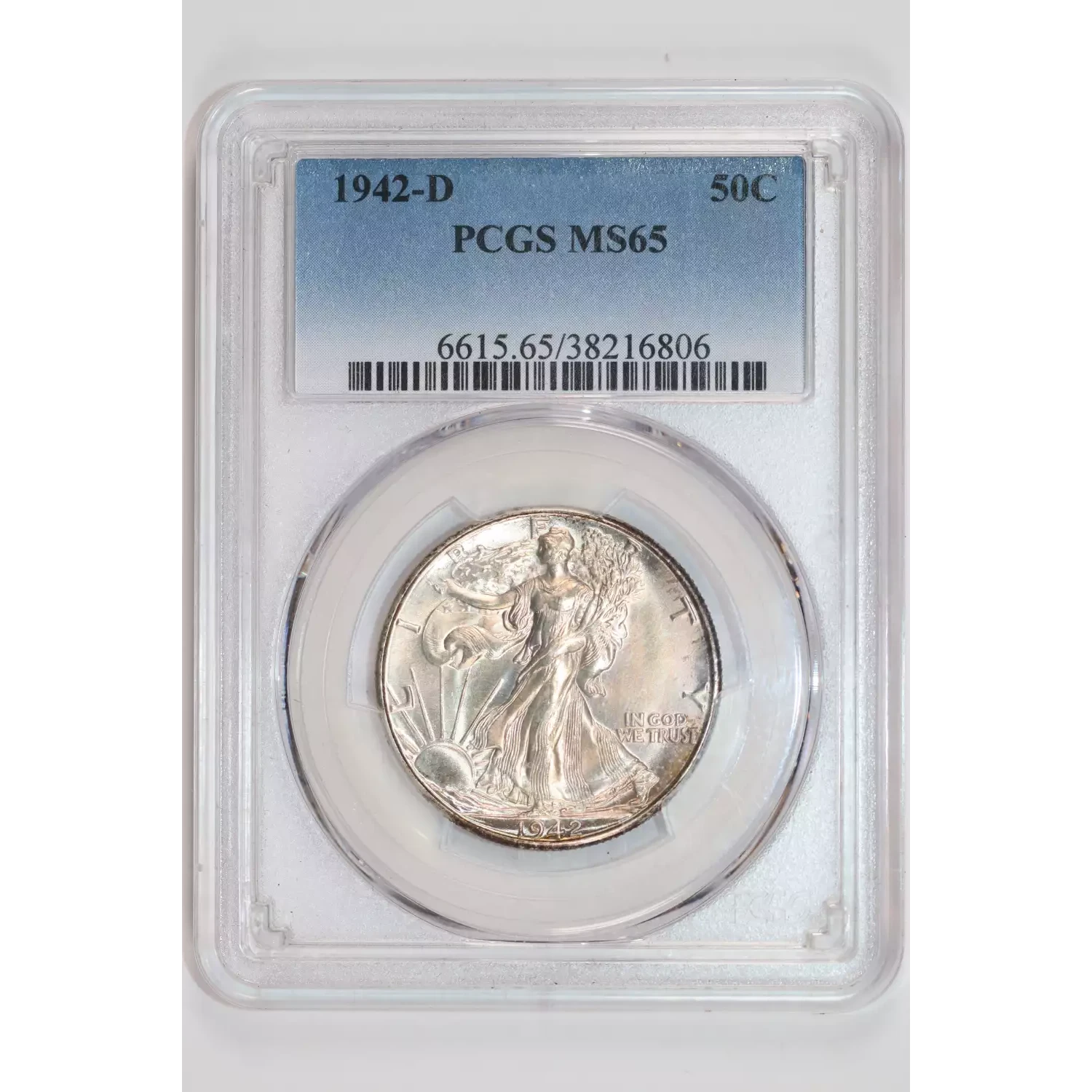 1942-D WALKING LIBERTY HALF DOLLAR PCGS MS65