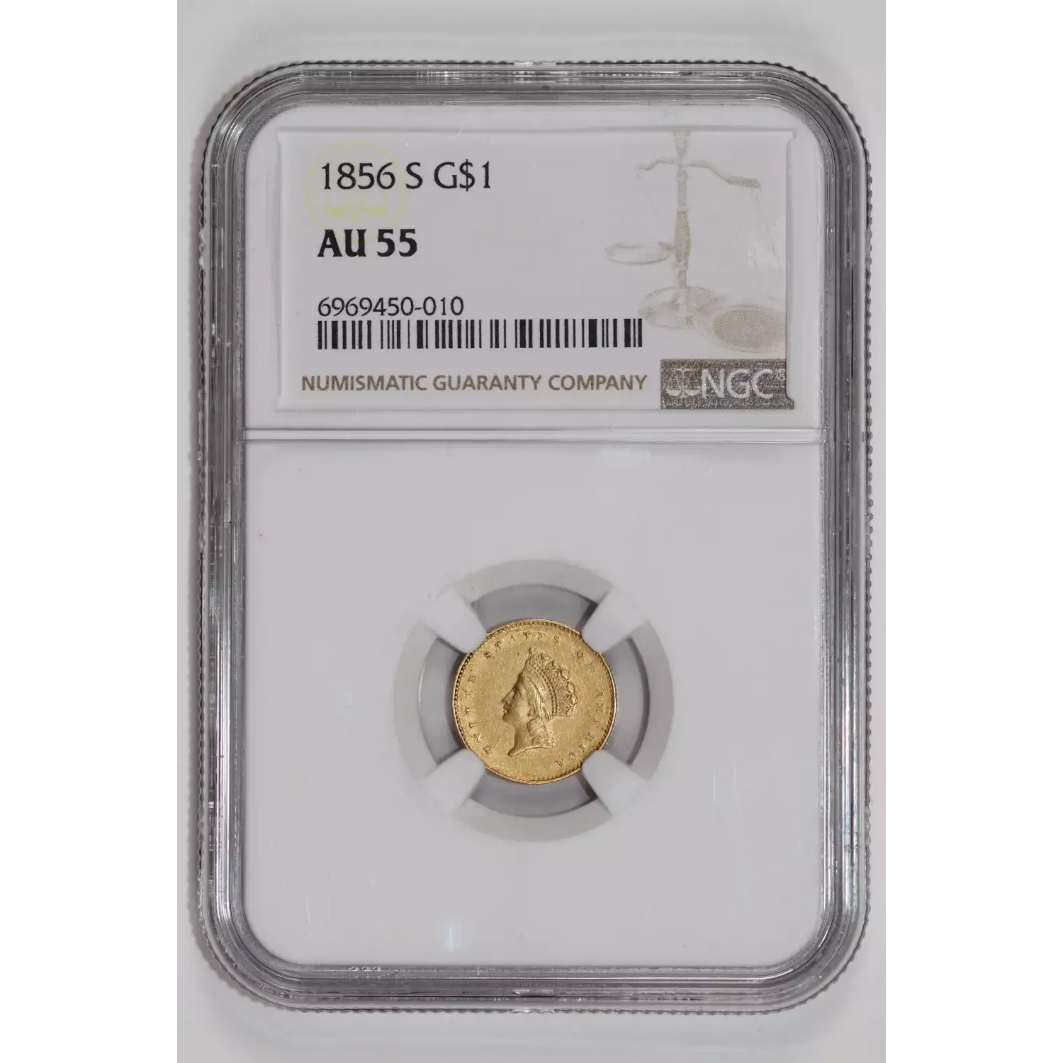 1856-S GOLD DOLLAR NGC AU55 - TOUGH DATE! NICE ORIGINAL COIN!