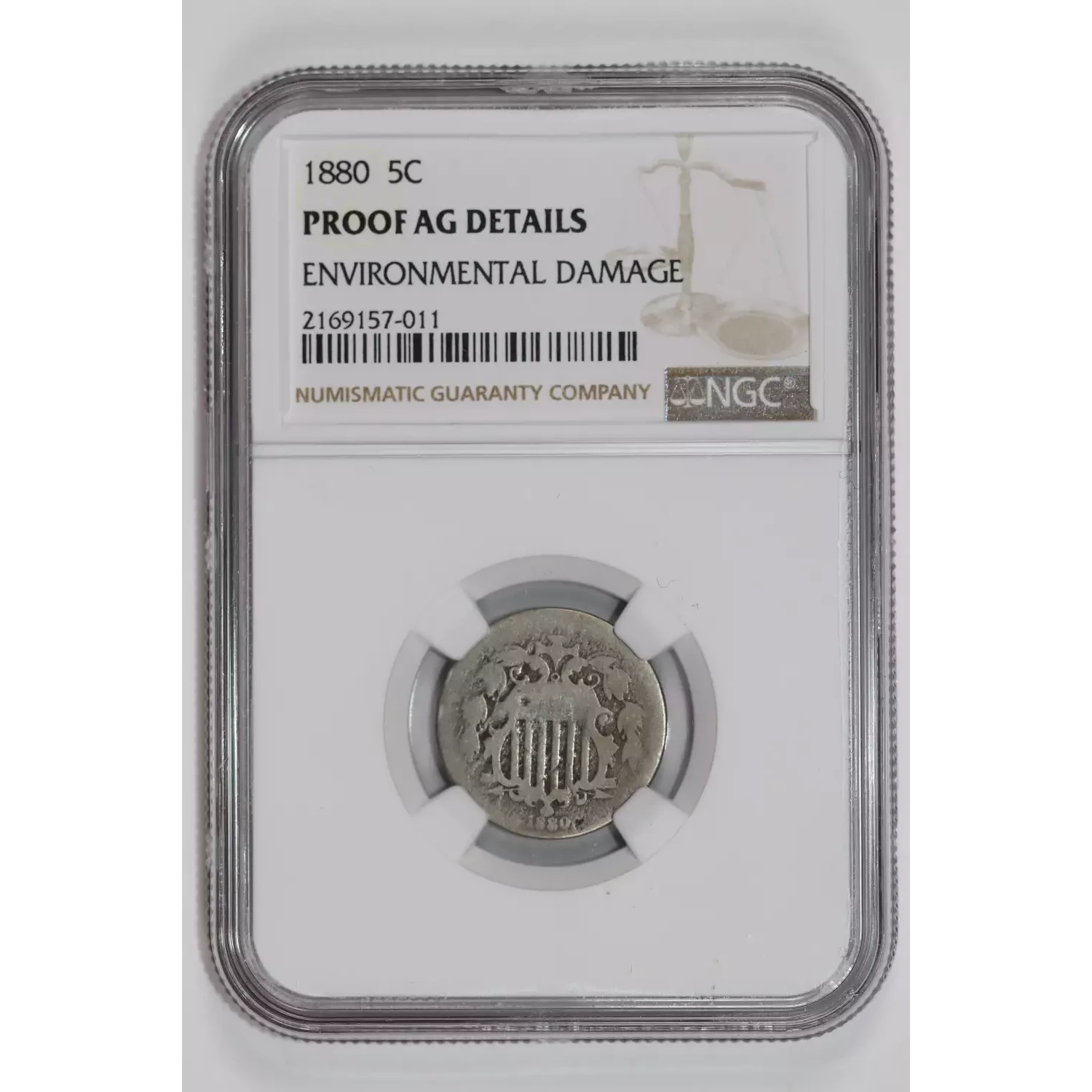 1880 PROOF SHIELD NICKEL NGC AG DETAILS - LOOKED MS