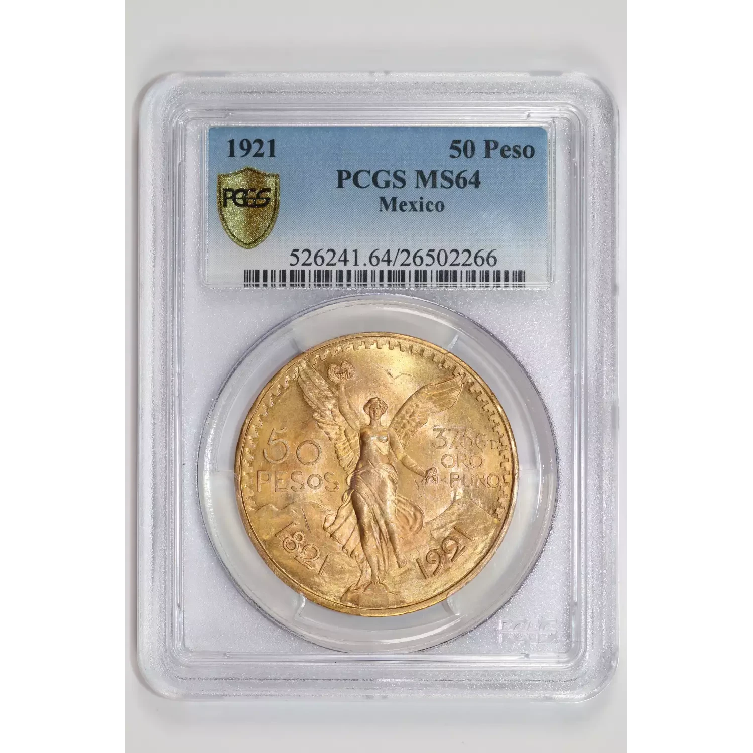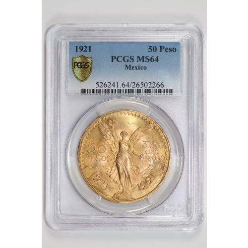 1921 MEXICO GOLD 50 PESOS PCGS MS64 KEY DATE - VERY PQ!