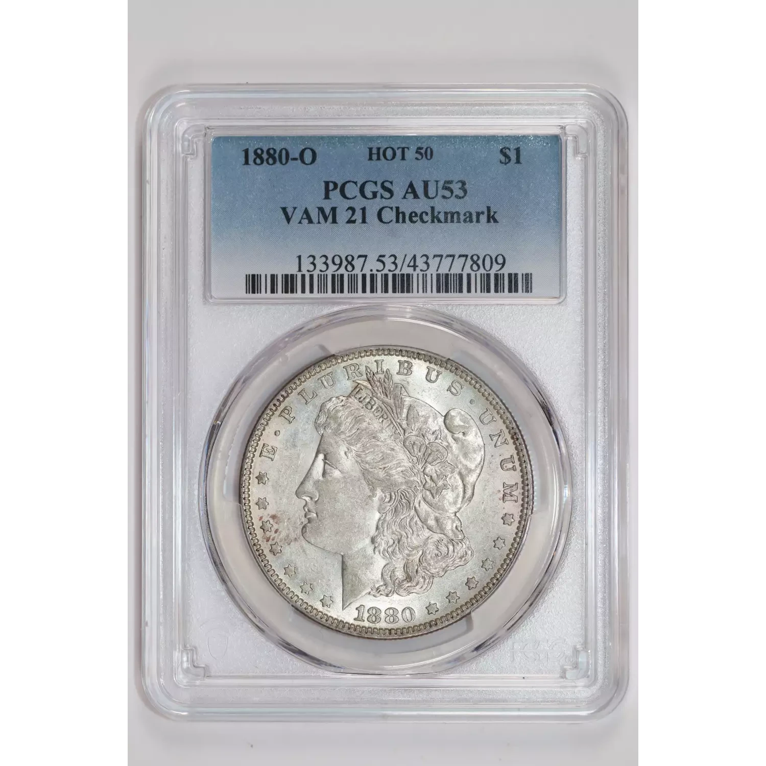 1880-O VAM-21 "CHECKMARK" HOT 50 S$1 PCGS AU53