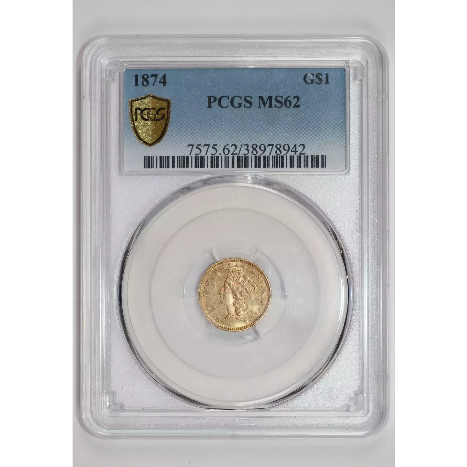 1874 GOLD DOLLAR PCGS MS62