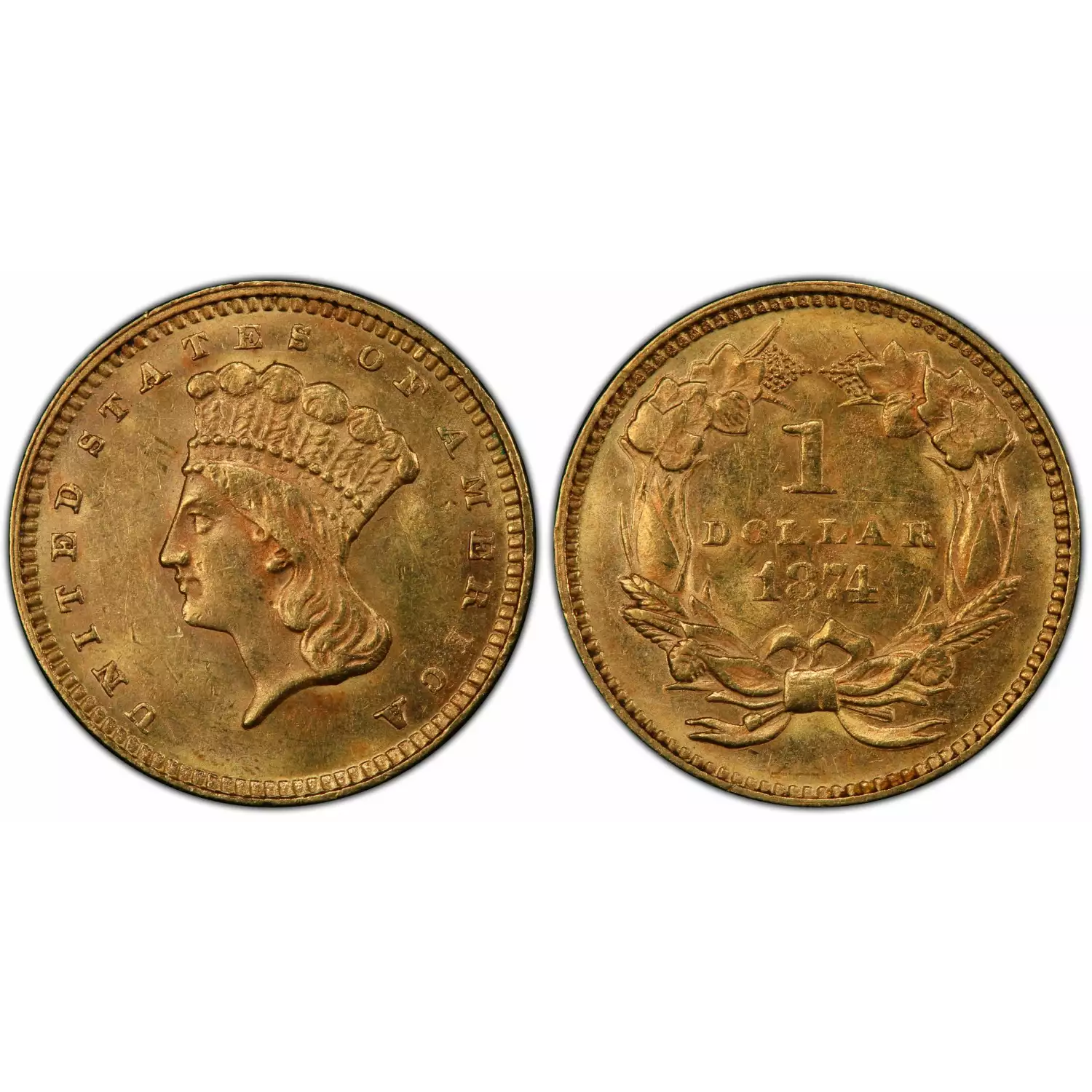 1874 Indian Princess Large Head Gold Dollar PCGS MS-62